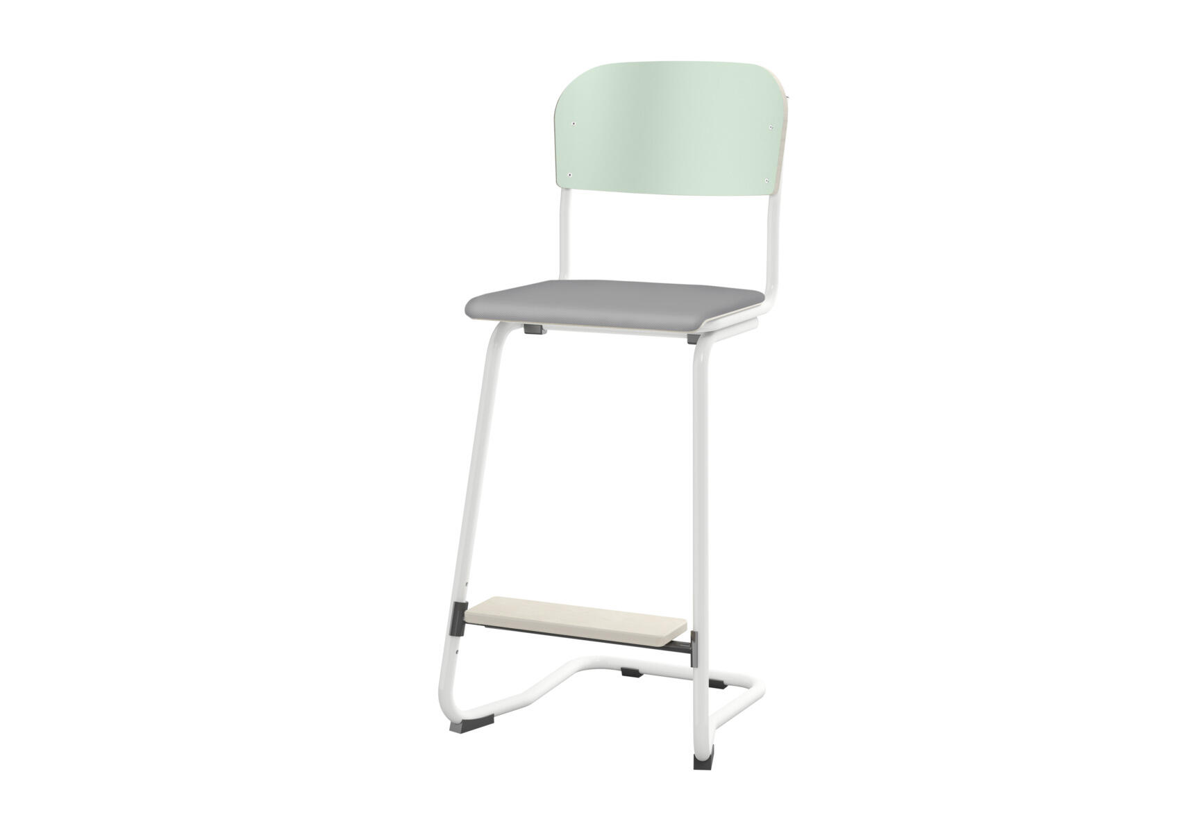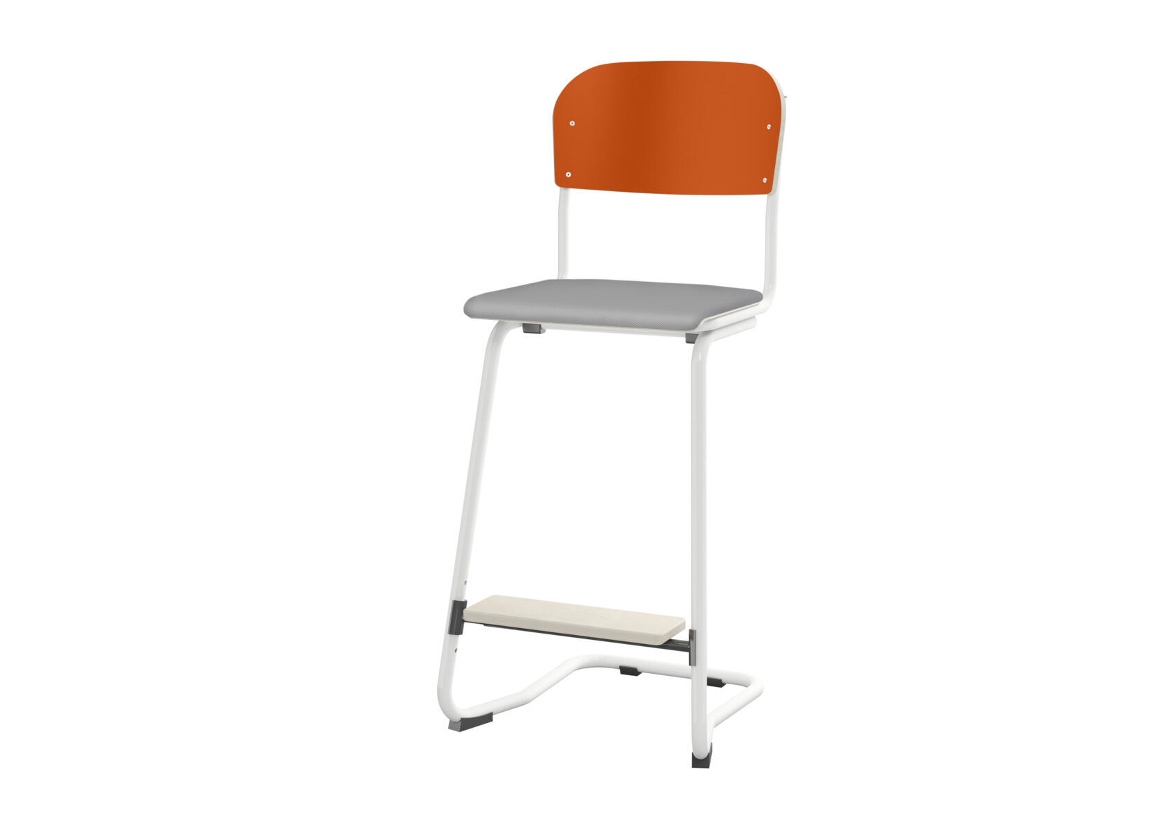 En af vores bestsellere. En klassiker som aldrig går af mode med sit enkle og tidløse design. Sæde og ryg i højtrykslaminat. Hvidlakeret stel, RAL 9003. Siddehøjde 50 cm, siddebredde 36 cm, siddedybde 35 cm. Vægt 4,6 kg. Justerbar fodstøtte i 3 faste højder. Kan stables (maks. 4 stk. i højden) og hænges på bord. Med lyddæmpende dupper under fødderne. Lyddæmpende filt med varenr. 35790, som kan fastgøres under sædet, kan bestilles separat.