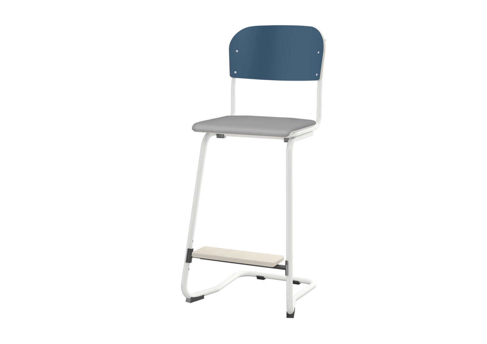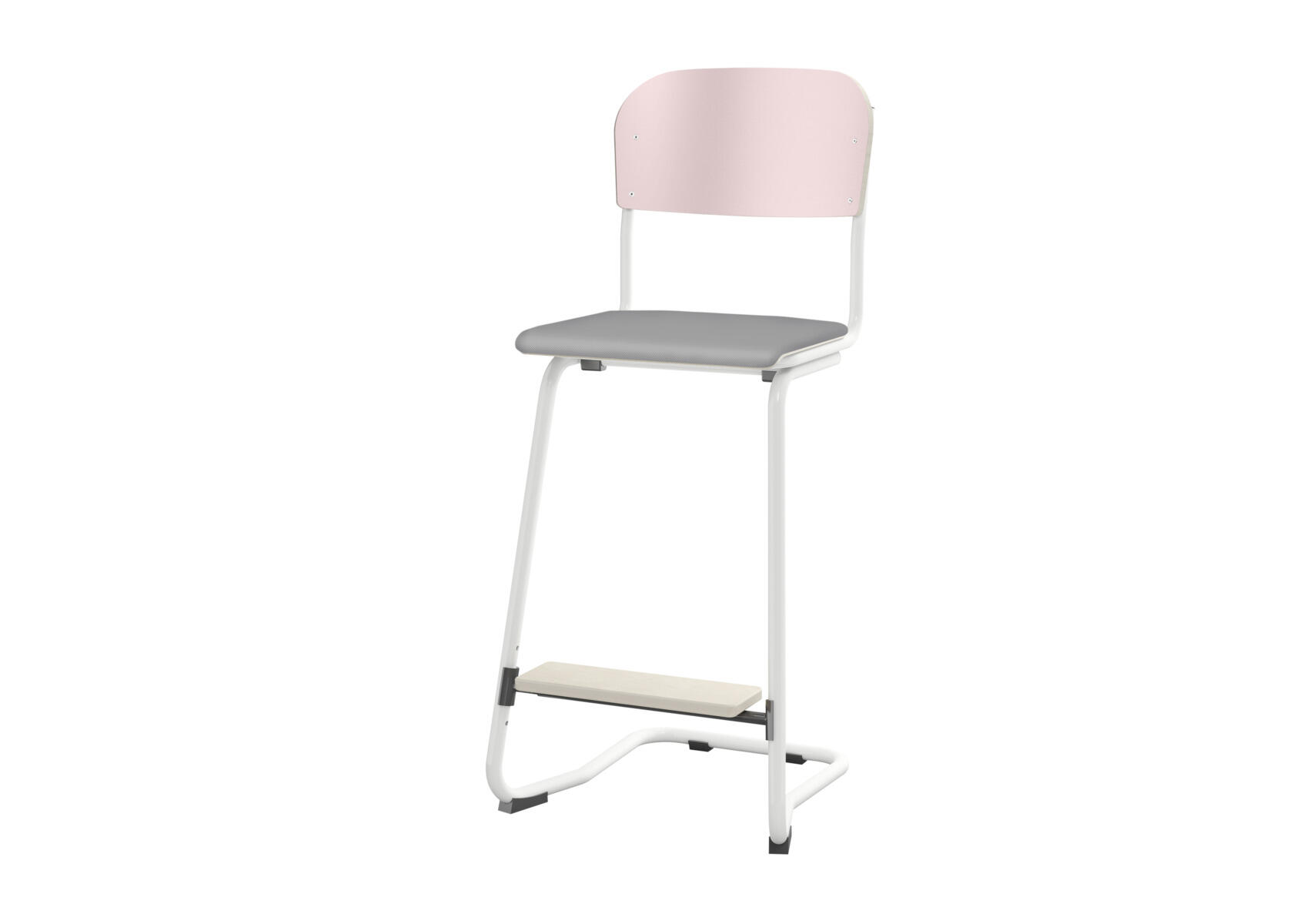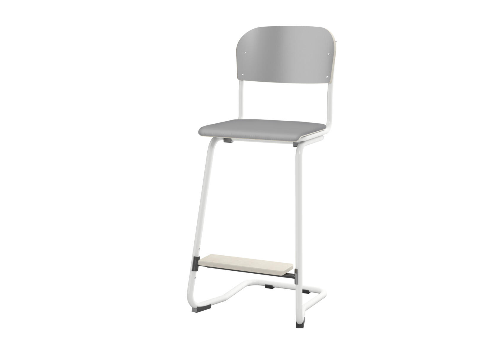 Stabelbar (maks. 4 stk. i højden). Med lyddæmpende dupper under fødderne. Kan hænges på bordet. Justerbar fodplade i 3 faste højder. Siddehøjde: 63 cm. Sædemål: B42xD39 cm. Stellets totaldybde er 54 cm. Vægt 7,4 kg. Sæde og ryg i højtrykslaminat. Hvidlakeret stel RAL 9003. Som et tilvalg kan sædet betrækkes med Xtreme Padang YS145 (100% polyester).