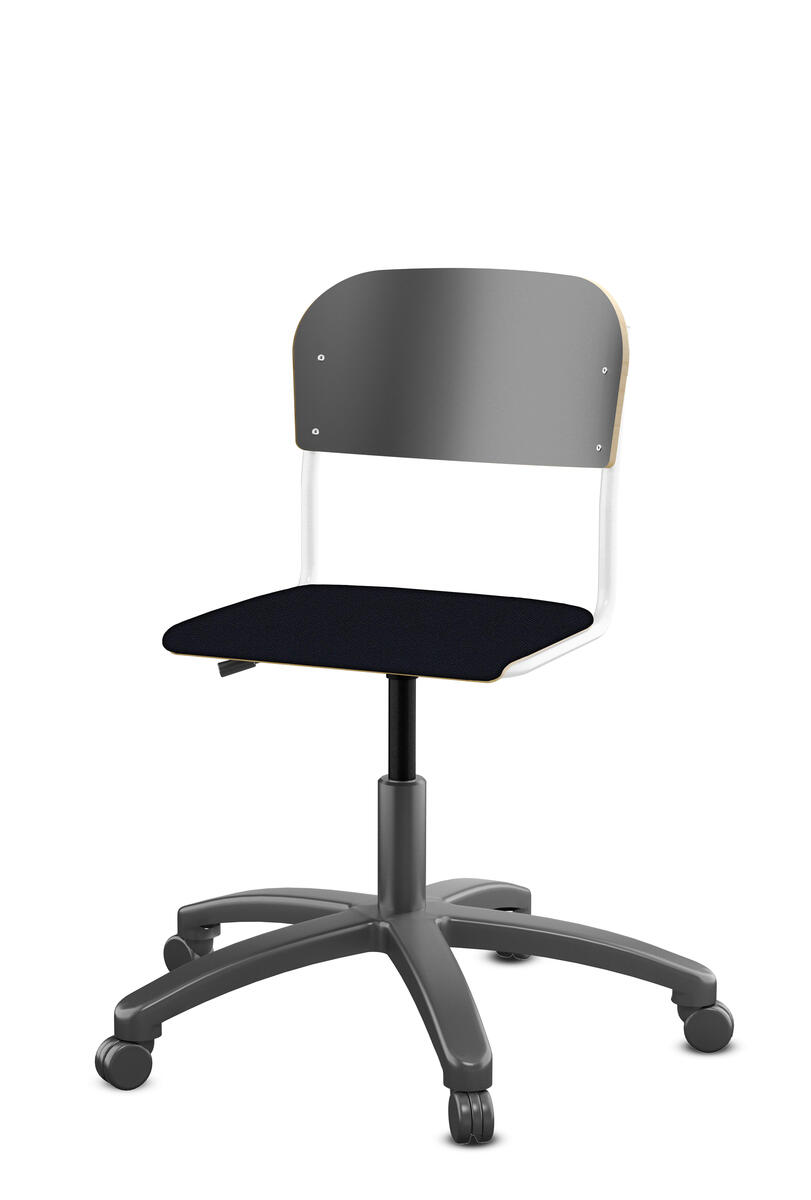 En af vores bestsellere. En klassiker som aldrig går af mode med sit enkle og tidløse design. Stolens højde justeres vha. gasfjeder. Sæde og ryg i højtrykslaminat. Siddehøjde: trinløs justerbar 38-51 cm. Siddebredde 36 cm, siddedybde 35 cm. Totaldybde 54 cm. Vægt 7 kg. Leveres umonteret. Lyddæmpende filt med varenr. 35790, som kan fastgøres under sædet, kan bestilles separat.
