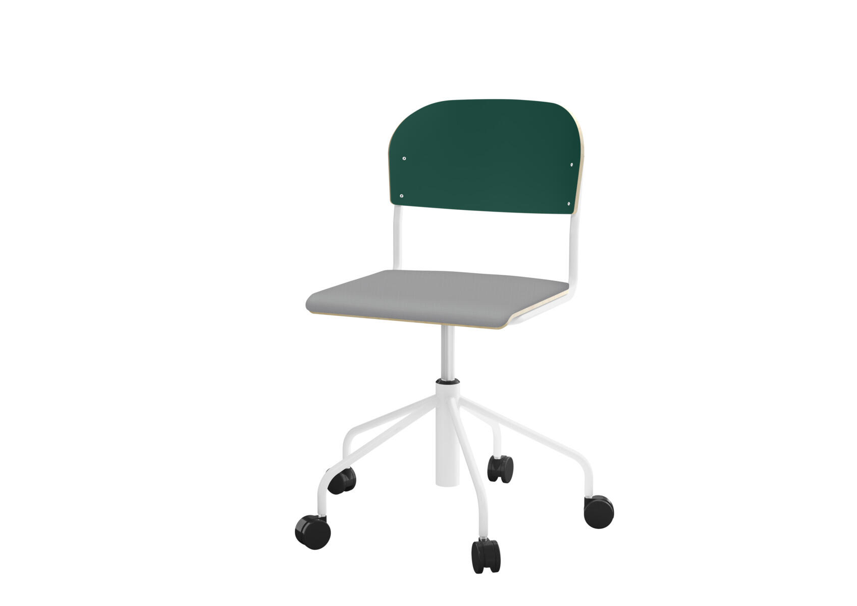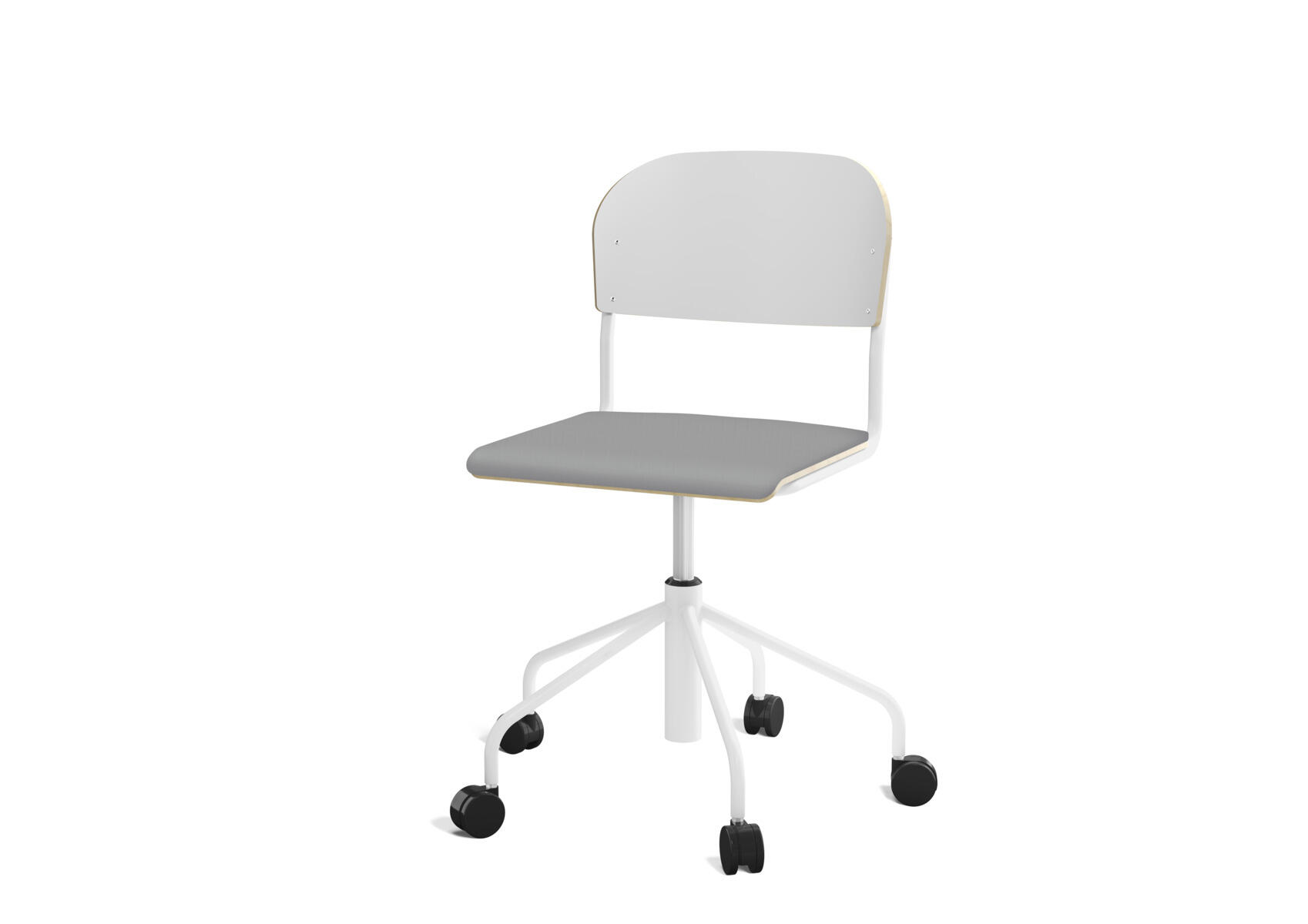 Elevstol med højt 5-kryds stel på hjul lakeret i RAL 9003. Siddehøjde (45-56 cm) justeres med gasfjeder. Som et tilvalg kan du få sædet betrukket med Xtreme Padang YS 145 (100 % polyester).