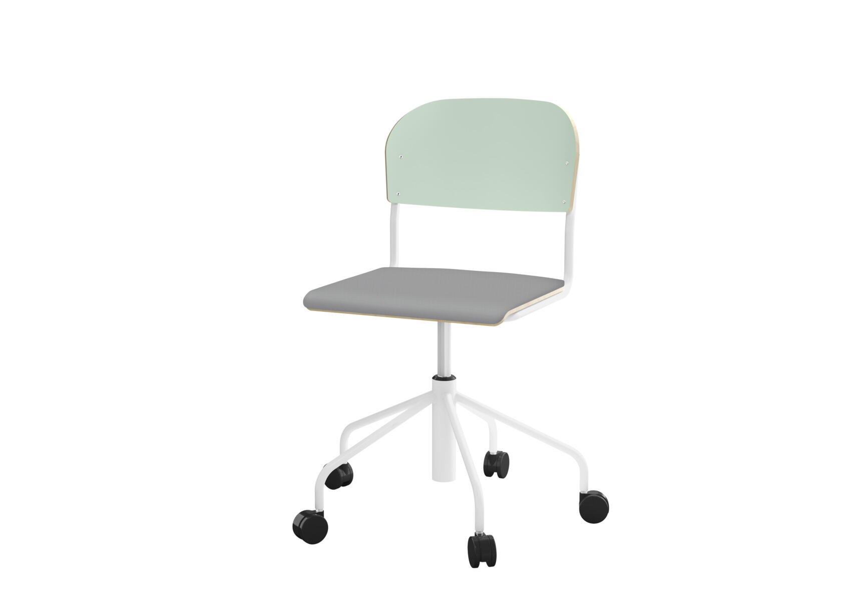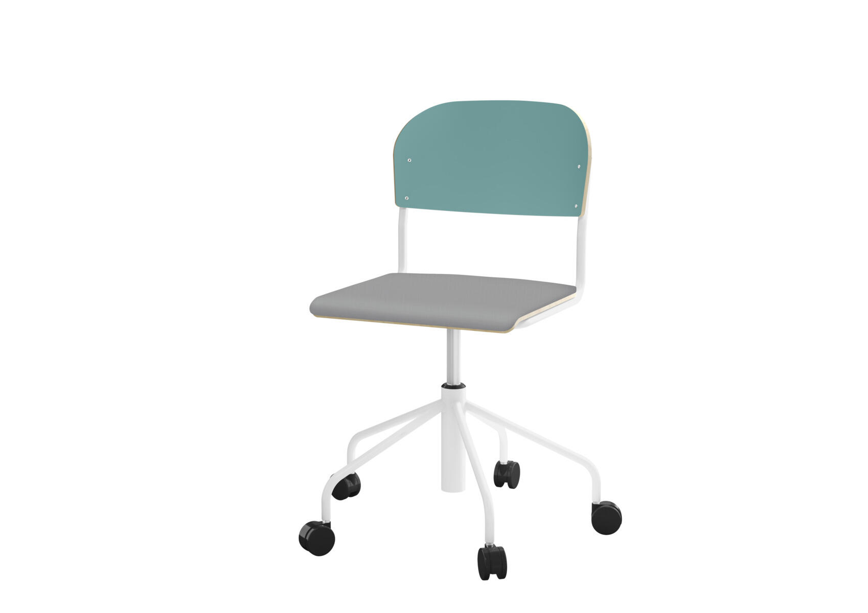 Elevstol med højt 5-kryds stel på hjul lakeret i RAL 9006. Siddehøjde (45-56 cm) justeres med gasfjeder. Som et tilvalg kan du få sædet betrukket med Xtreme Padang YS 145 (100 % polyester).