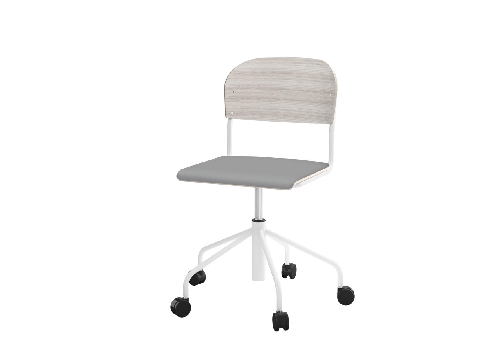 Matte stol sh 45-56 cm høj 5-kryds m/hjul stort sæde hvidt stel