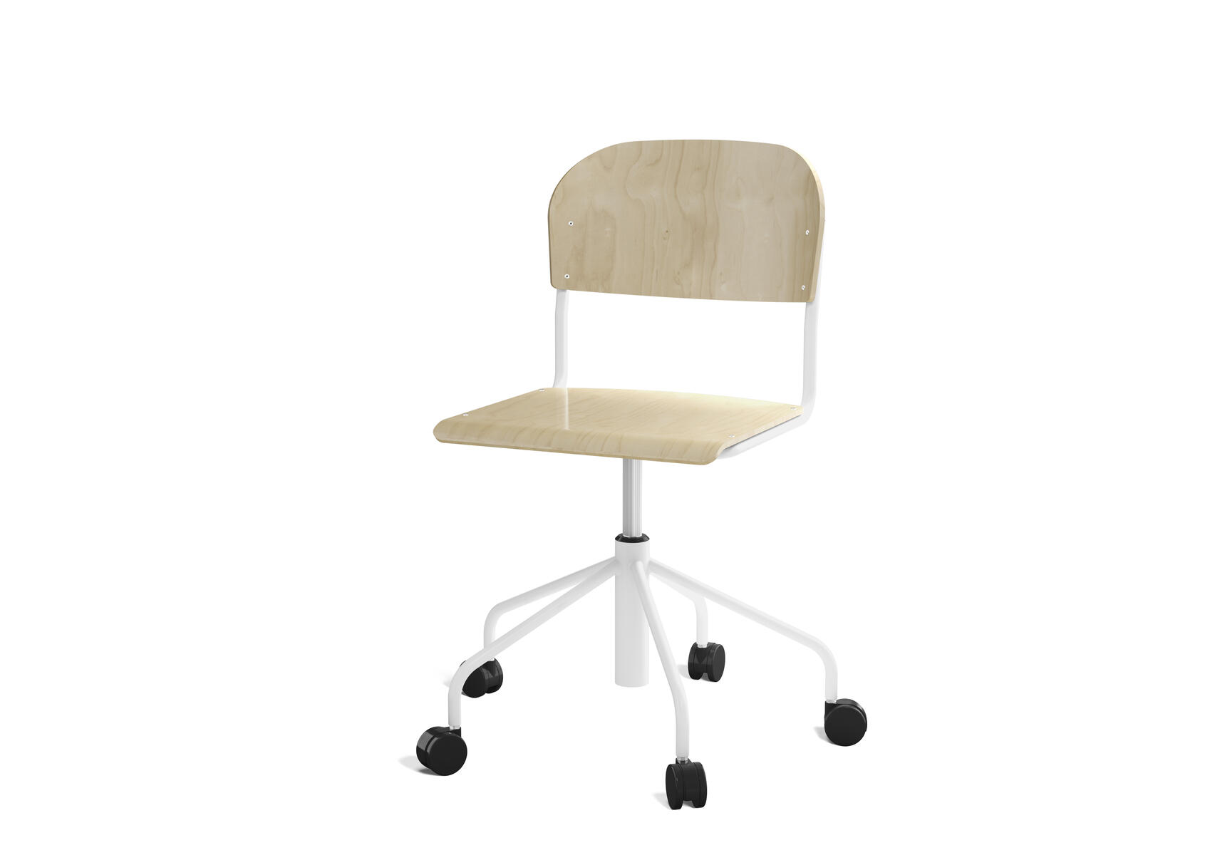 Elevstol med højt 5-kryds stel på hjul lakeret i RAL 9003. Siddehøjde (45-56 cm) justeres med gasfjeder. Som et tilvalg kan du få sædet betrukket med Xtreme Padang YS 145 (100 % polyester).