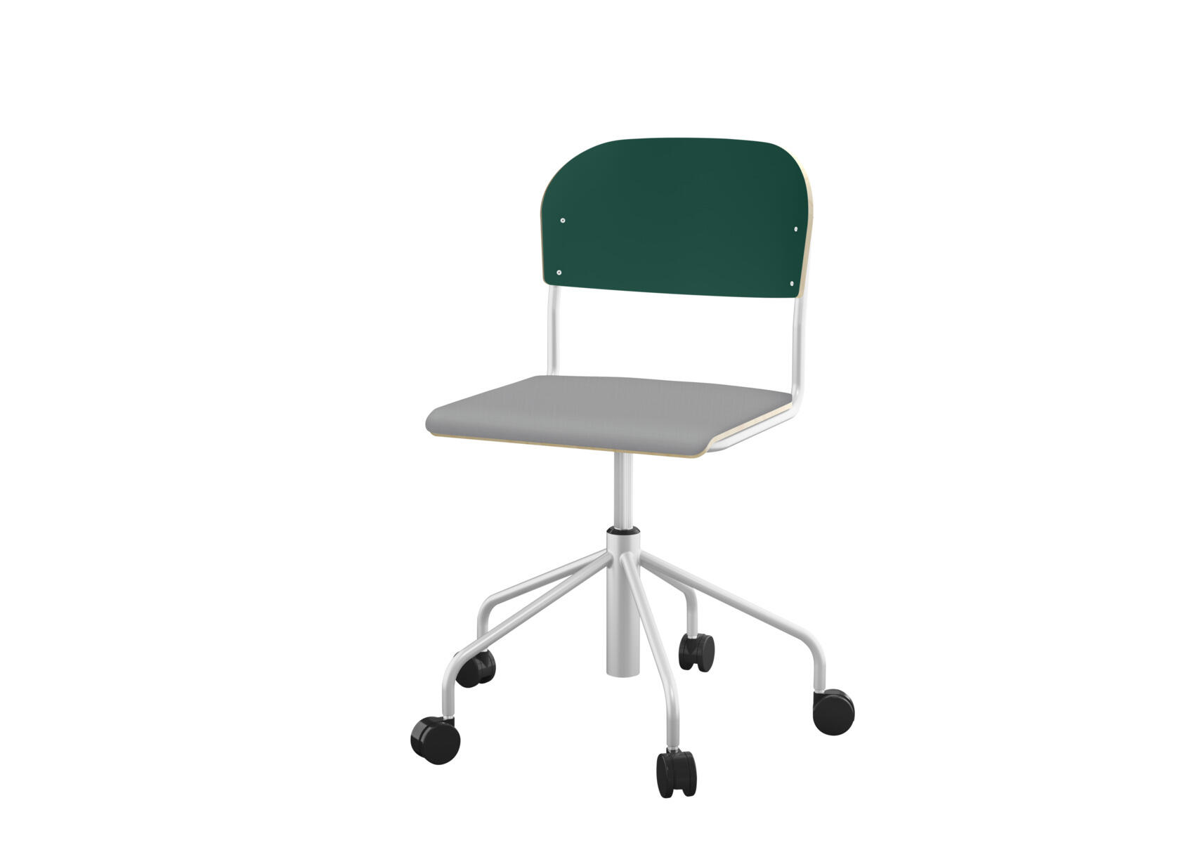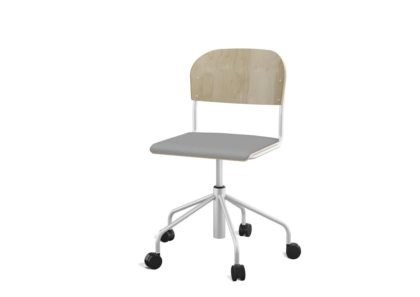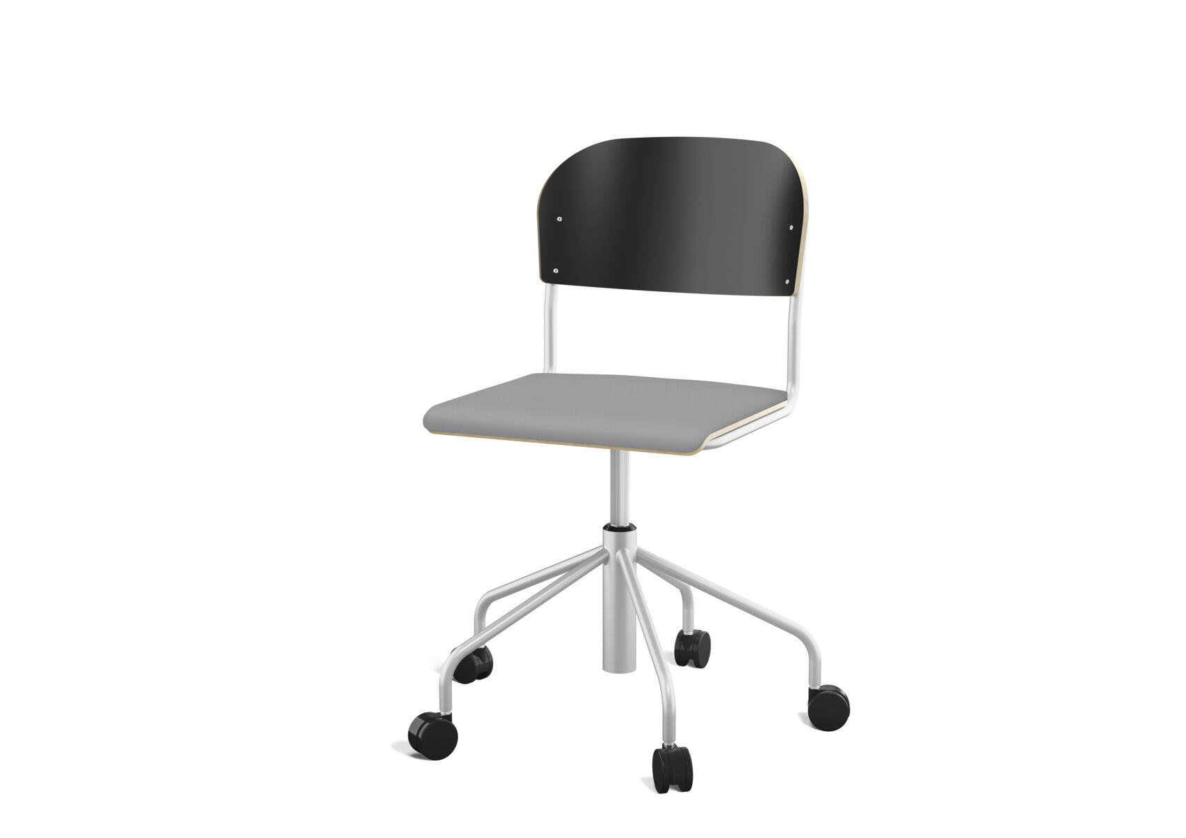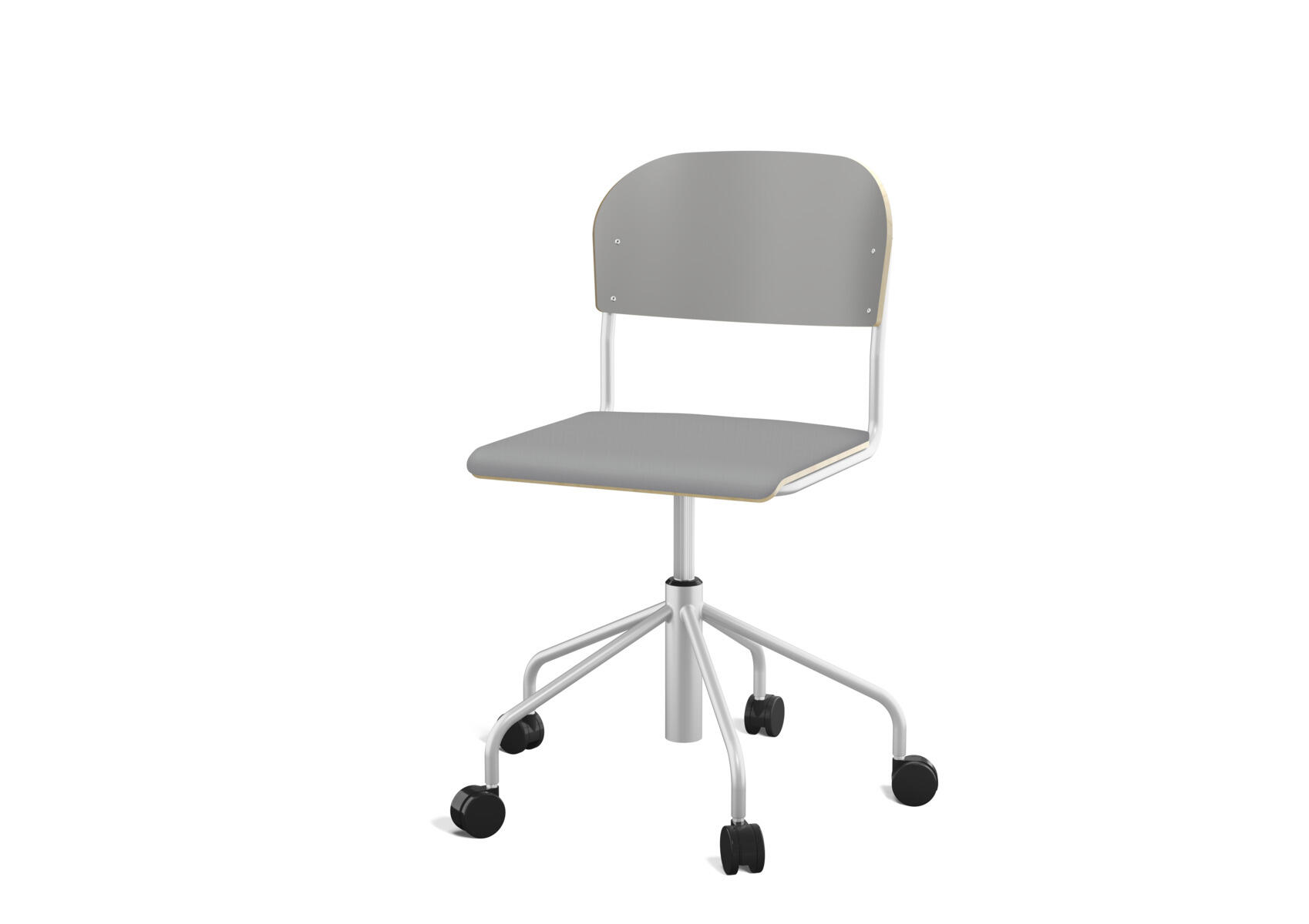 Elevstol med højt 5-kryds stel på hjul lakeret i RAL 9006. Siddehøjde (45-56 cm) justeres med gasfjeder. Som et tilvalg kan du få sædet betrukket med Xtreme Padang YS 145 (100 % polyester).