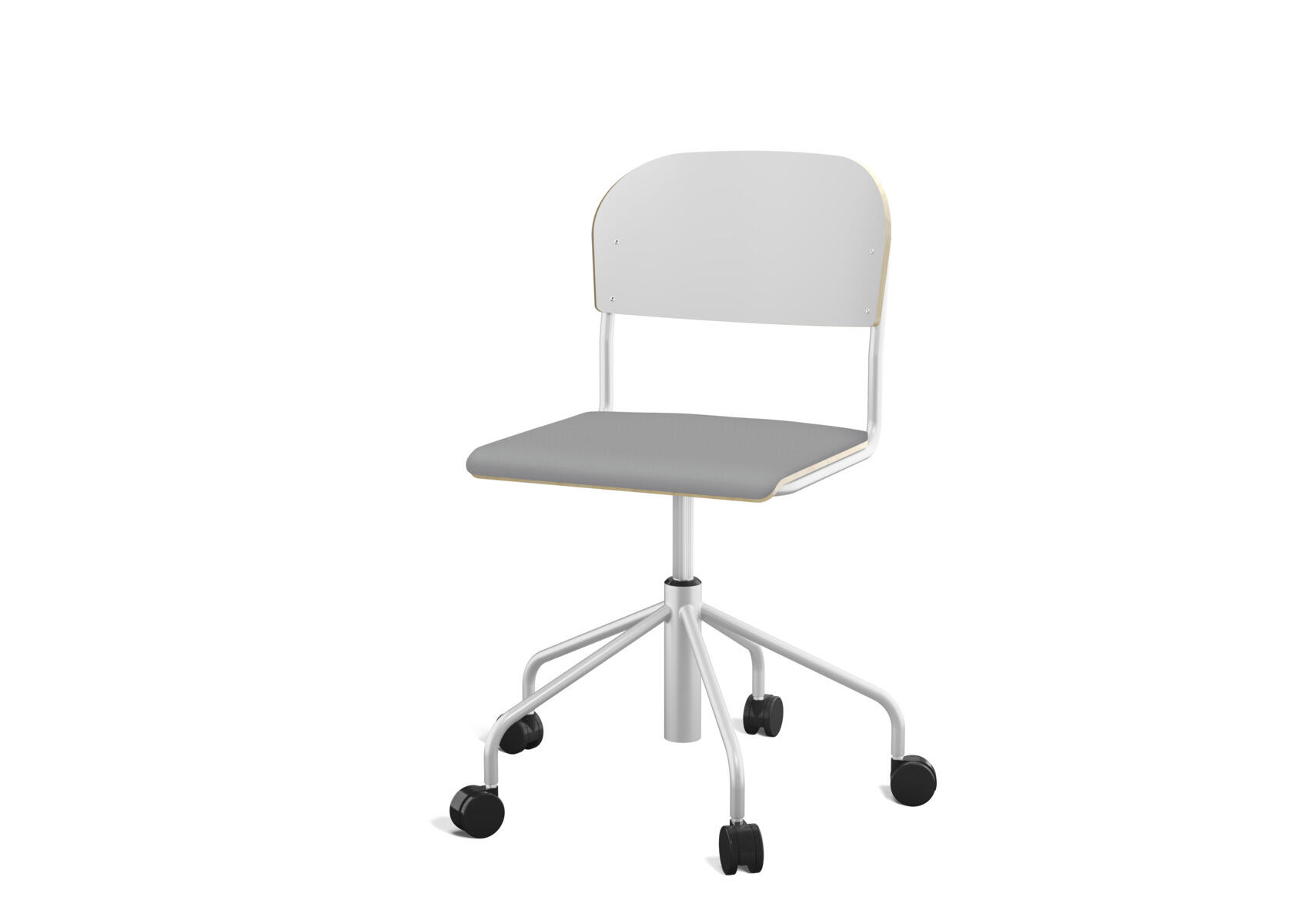 Elevstol med højt 5-kryds stel på hjul lakeret i RAL 9003. Siddehøjde (45-56 cm) justeres med gasfjeder. Som et tilvalg kan du få sædet betrukket med Xtreme Padang YS 145 (100 % polyester).