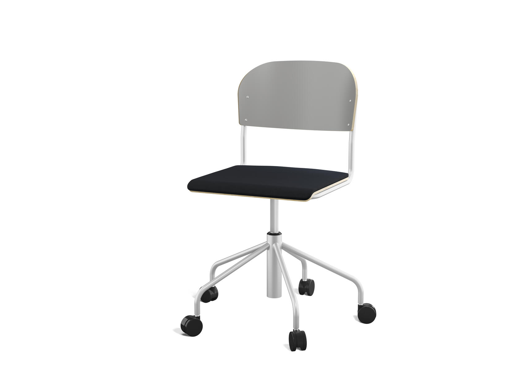Elevstol med højt 5-kryds stel på hjul lakeret i RAL 9006. Siddehøjde (45-56 cm) justeres med gasfjeder. Som et tilvalg kan du få sædet betrukket med Xtreme Padang YS 145 (100 % polyester).