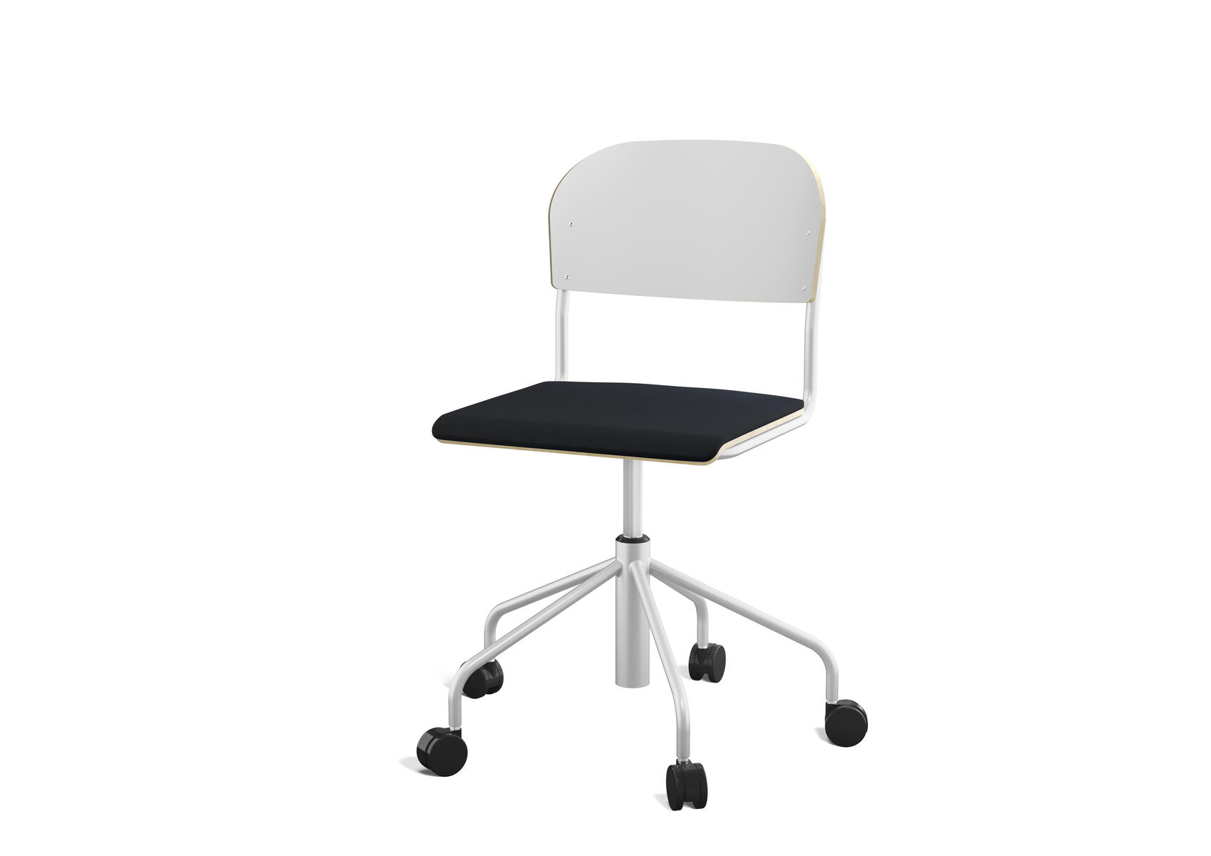 Elevstol med højt 5-kryds stel på hjul lakeret i RAL 9003. Siddehøjde (45-56 cm) justeres med gasfjeder. Som et tilvalg kan du få sædet betrukket med Xtreme Padang YS 145 (100 % polyester).