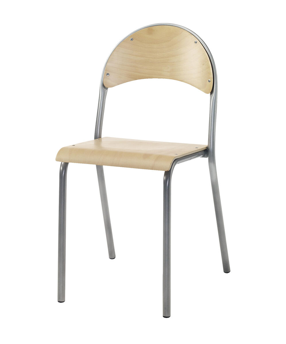 Helle er en firbenet stabelstol i klassisk design, som passer til Helle bordet og andre bordtyper. Siddehøjde 39 cm. Stel i RAL 9006 Silver. Sæde og ryg i finer.