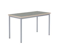 Bordplade med lyddæmpende overflade i linoleum. Justerbare stilleskruer sikrer, at bordet står stabilt selv på ujævne overflader. Understel i sølv RAL 9006.