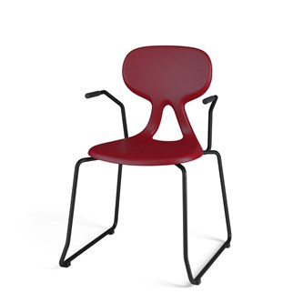 En skolestol med en fleksibel støtte til ryggen. Det ergonomiske design giver brugeren af stolen en bedre kropsholdning. Man kan stable maks. 4 stole i højden og hænge den på et bord ved at vende den. Nem at rengøre. Skal i polyuretan. Sølvlakeret understel, RAL 9006. Med armlæn. Siddehøjde 45 cm. Siddebredde 44 cm, siddedybde 40 cm.