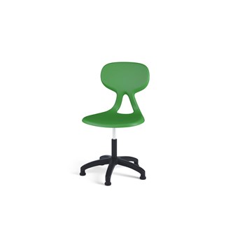 En skolestol med en fleksibel støtte til ryggen. Det ergonomiske design giver brugeren af stolen en bedre kropsholdning. Nem at rengøre. Skal i polyuretan. Krydsunderstel i sort nylon med glidefødder. Mål: Siddehøjde 38-50 cm. Siddebredde 44 cm. Siddedybde 40 cm.