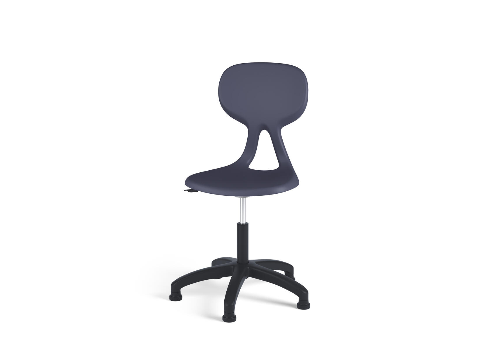 En skolestol med en fleksibel støtte til ryggen. Det ergonomiske design giver brugeren af stolen en bedre kropsholdning. Nem at rengøre. Skal i polyuretan. Kryds i sort nylon med stille hjul. Mål: Siddehøjde 38-50 cm. Siddebredde 44 cm. Siddedybde 40 cm.