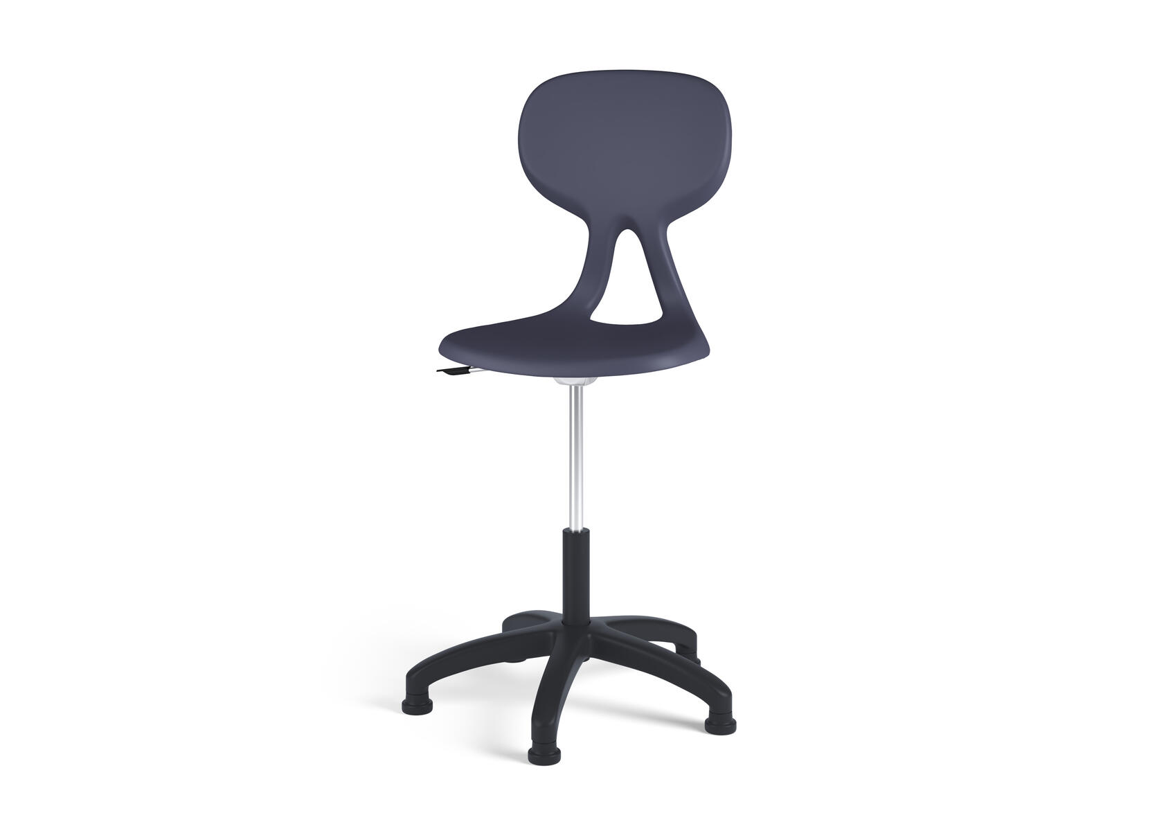 En skolestol med en fleksibel støtte til ryggen. Det ergonomiske design giver brugeren af stolen en bedre kropsholdning. Nem at rengøre. Skal i polyuretan. Kryds i sort nylon med stille hjul. Mål: Siddehøjde 38-50 cm. Siddebredde 44 cm. Siddedybde 40 cm.