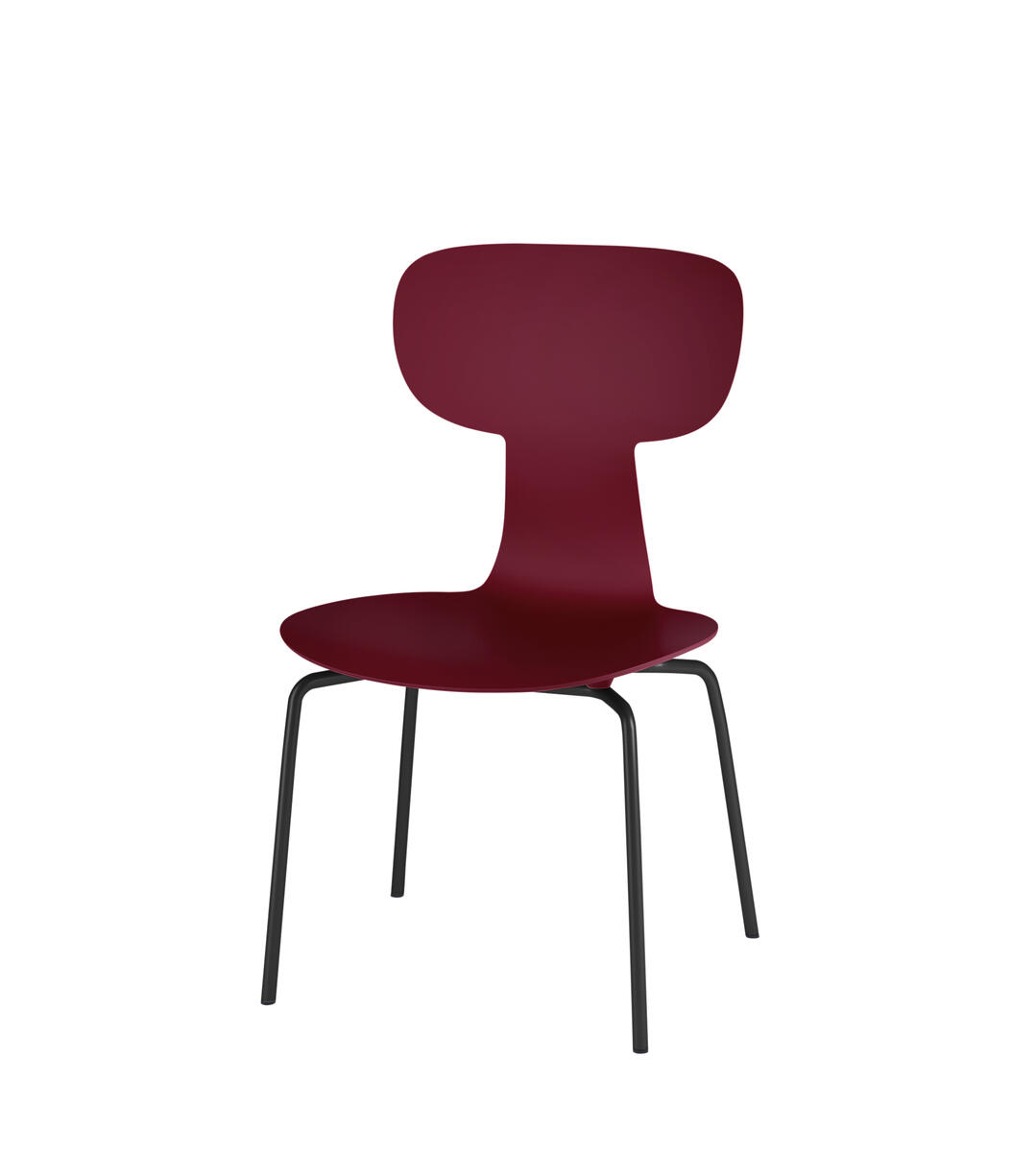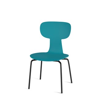 Giver fleksibel støtte til ryggen. Kan stables og hænges op, når man vender den om. Nem at rengøre. Skal i polyuretan. Sortlakeret understel RAL 9005.