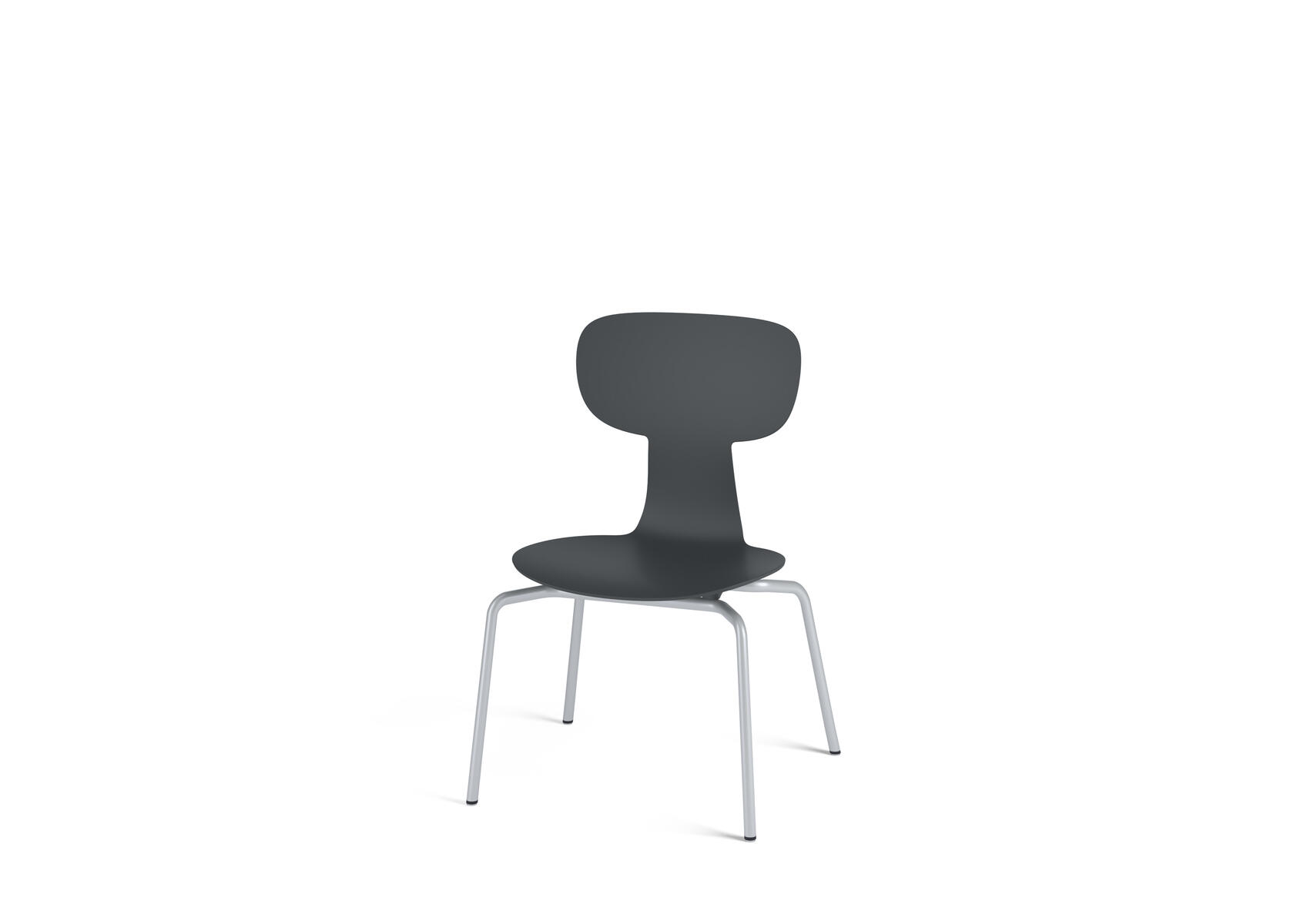 Giver fleksibel støtte til ryggen. Kan stables, maks. 4 stole, og understellet er udformet, så stolen let kan hænges op. Nem at rengøre. Skal i polyuretan. Hvidlakeret understel RAL 9003.