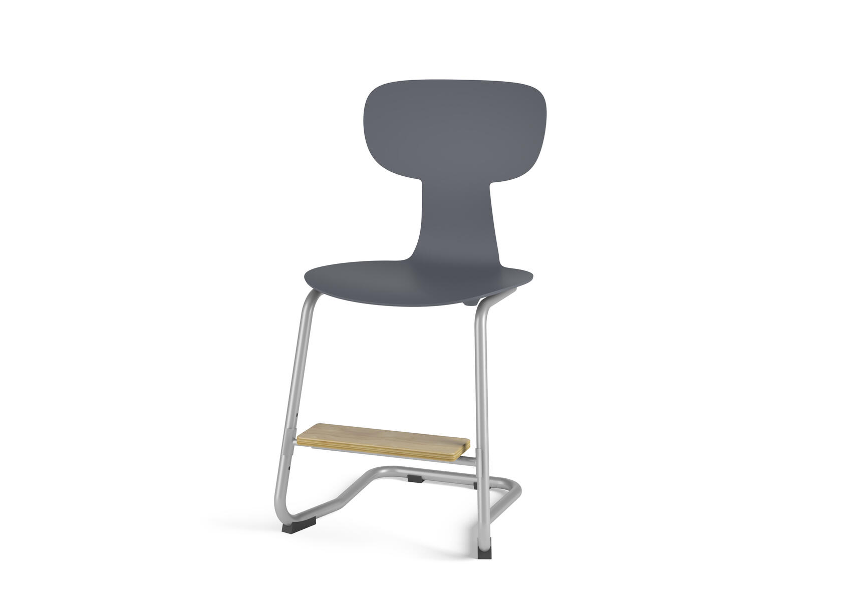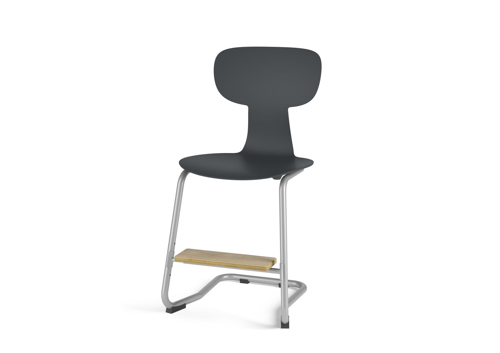 Stol der giver fleksibel støtte til ryggen. Nem at rengøre. Skal i polyuretan. Sølvlakeret stunderstel i RAL 9006. Kan stables (maks. 4 stole). Justerbar fodstøtte.