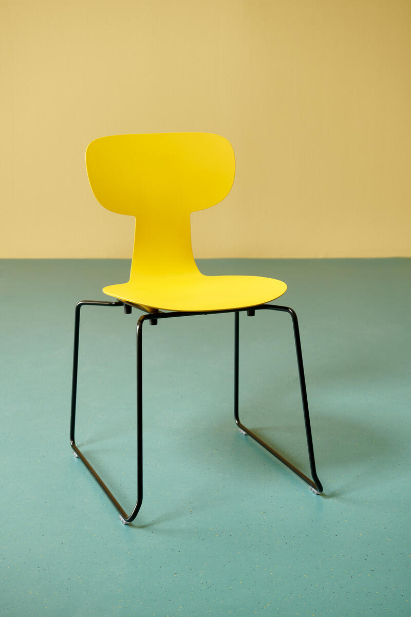 Giver fleksibel støtte til ryggen. Bøjlebenene gør stolen stabil. Koblingsbeslag (82529) kan tilkøbes. Kan stables. Nem at rengøre. Skal i polyuretan. Sortlakeret understel RAL 9005.