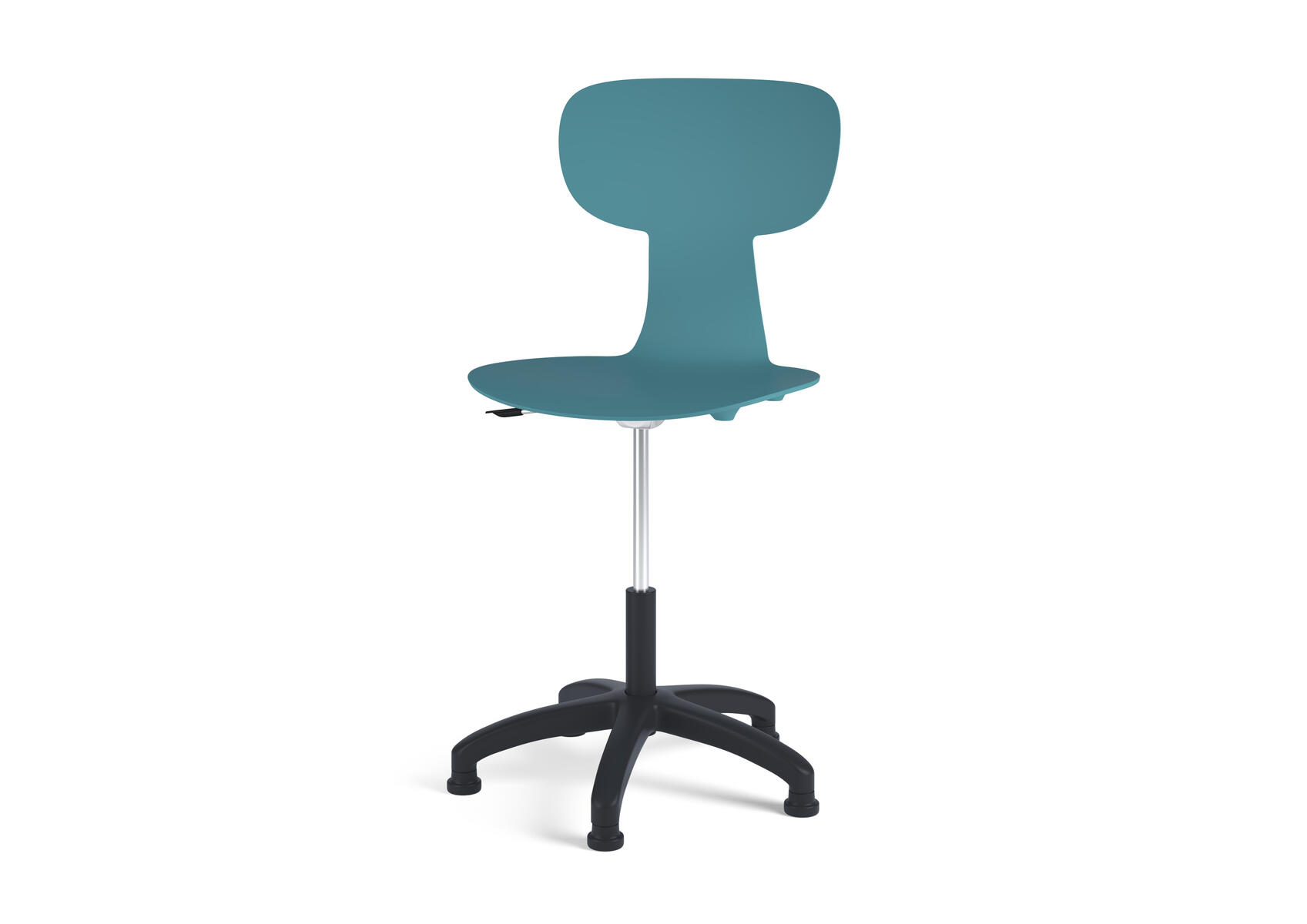 Giver fleksibel støtte til ryggen. Stolen har en mekanisme, der gør det muligt at vinkle sædet i flere retninger. Let at rengøre. Skal i polyuretan. Sort nylonkryds med glidefødder. Sædemål: B43xD38 cm.