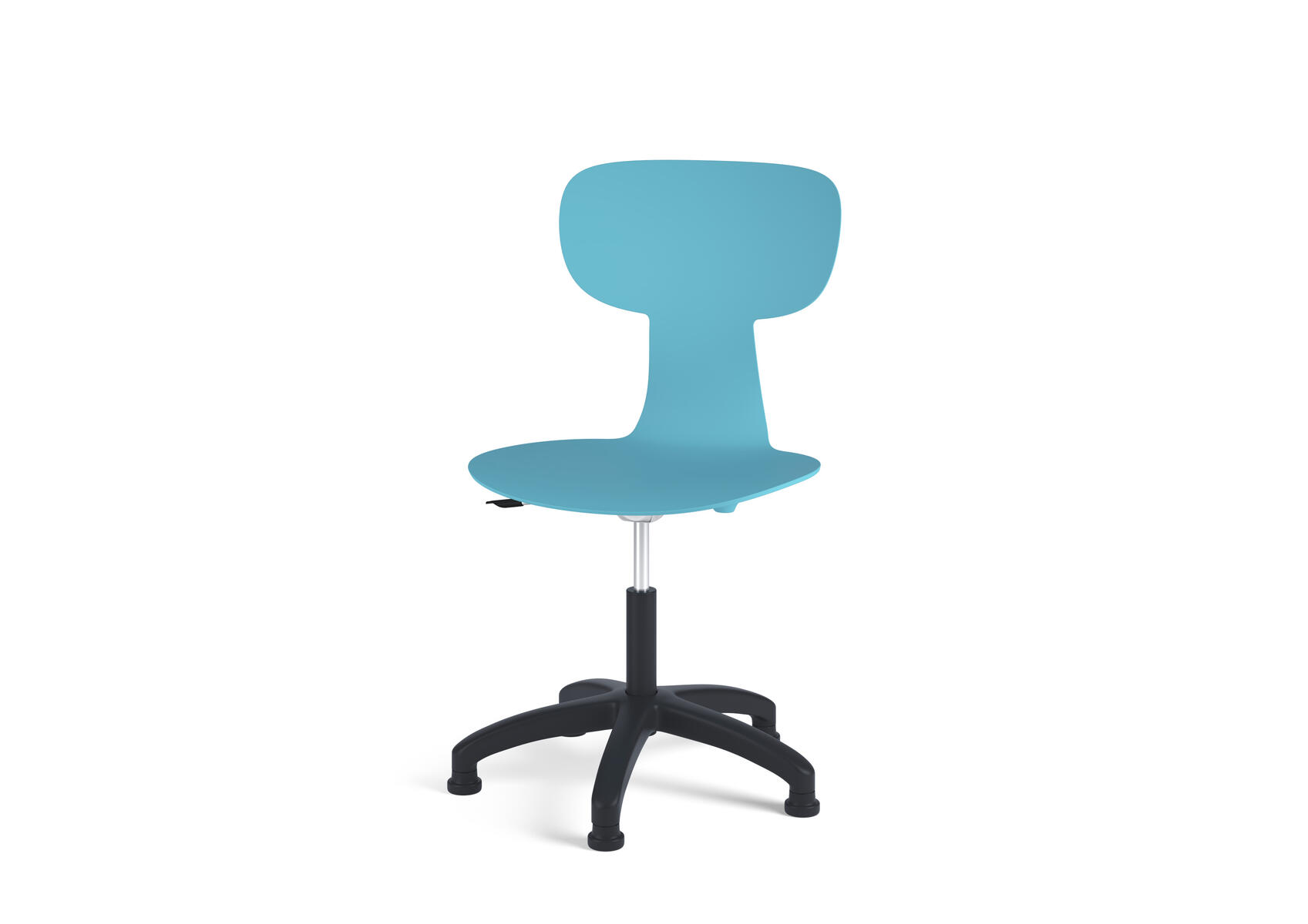 Giver fleksibel støtte til ryggen. Stolen har en mekanisme, der gør det muligt at vinkle sædet i flere retninger. Let at rengøre. Skal i polyuretan. Sort nylonkryds med glidefødder. Sædemål: B43xD38 cm.