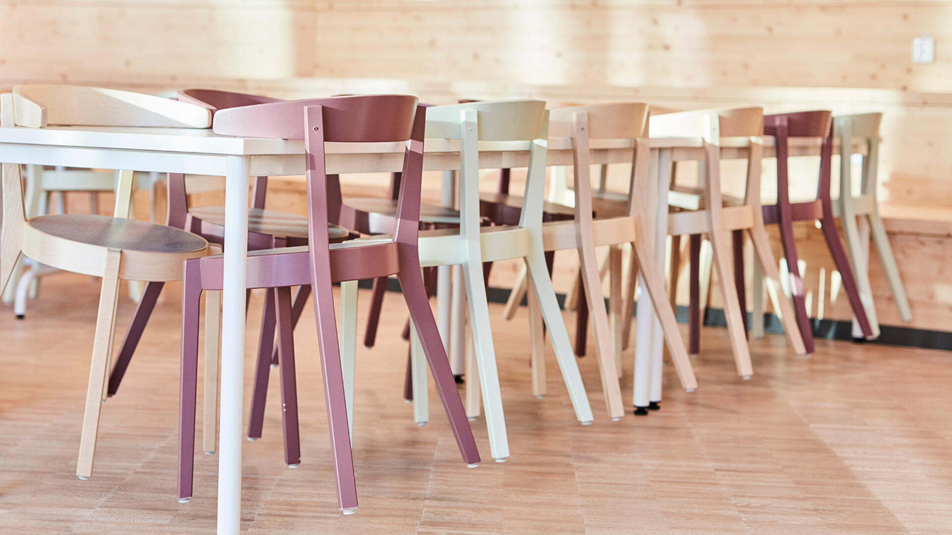 Circum er en serie stabelbare kantinestole med armlæn og taburetter i massiv birk med formpresset sæde og ryg. Den smukt buede ryg gør det nemt at hænge stolen op på bordet for at lette rengøringen. Sædet kan desuden fås med en lyddæmpende underside. Stellet fås enten klarlakeret eller bejdset i forskellige farver.