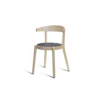 Massiv birk. Formpresset sæde og ryg. Højtrykslaminat på sæde. Med lyddæmpning under sæde. Kan stables og hænges på bordet. Siddehøjde 45 cm. Siddedybde 41 cm.
