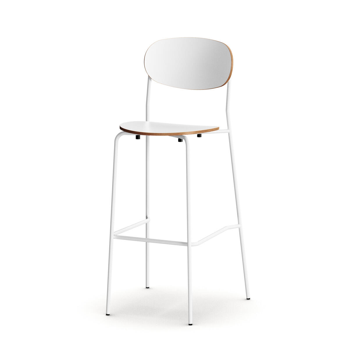 Collab stol med stel fremstillet af 16 mm rør, pulverlakeret i RAL 9003. Sæde og ryg er i formpresset krydsfinér for stabilitet og komfort. Produktet er testet og godkendt i henhold til EN 1729-2:2023. Stolen er stabelbar.
