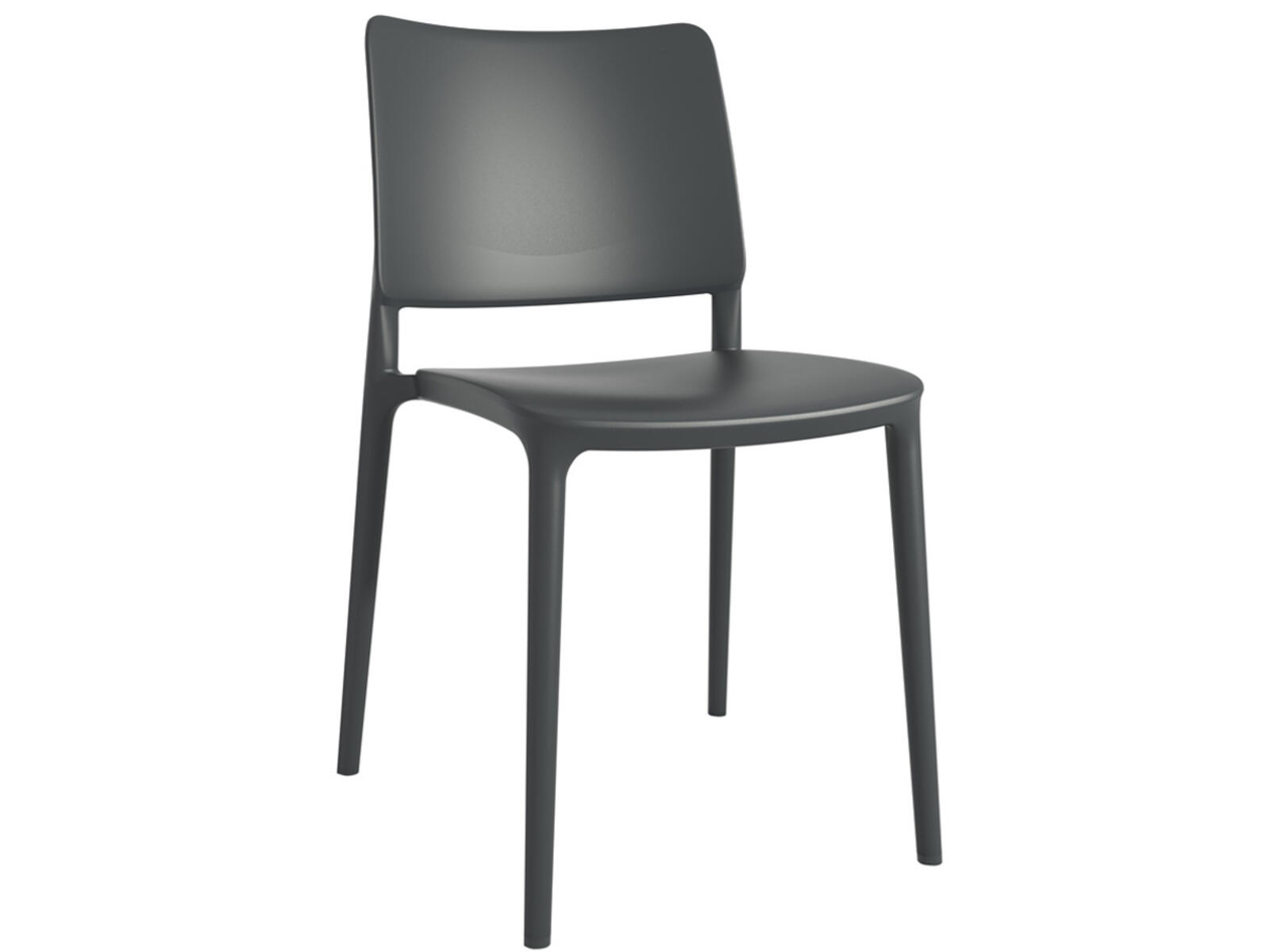 Stabelbar stol med et stel af glasfiberforstærket polypropylen og ryg af polykarbonat. Kan bruges både indendørs og udendørs. UV-bestandig. Maks. antal stole, der kan stables: 10 stk.