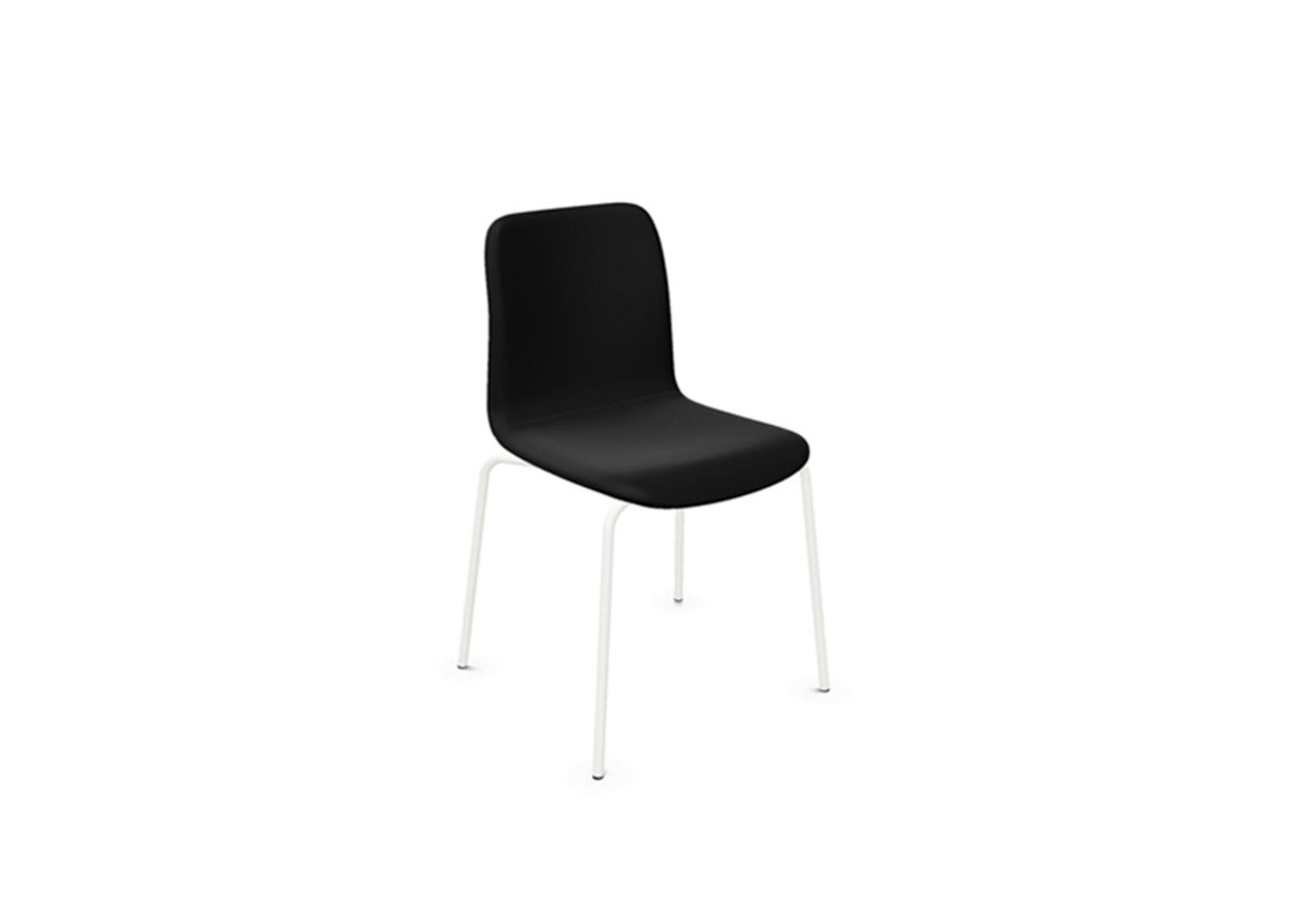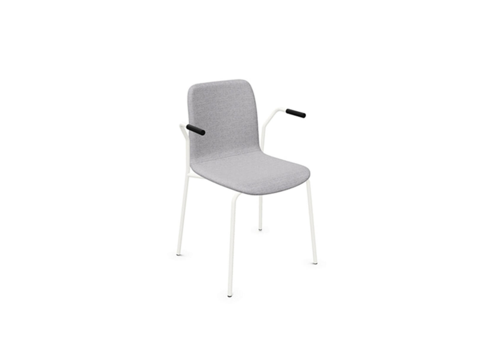 Sædeskål i formpresset krydsfinér polstret med koldskum, som giver både komfort og støtte. Stabilt pulverlakeret stel i Ø18 mm rør med møbelglidere, der beskytter gulvet. Armlæn fås som tilbehør. For ekstra fleksibilitet kan der tilkøbes koblings- og rækkekoblingsbeslag, som gør det nemt at skabe rækker eller gruppesætninger. Maks. belastning 110 kg. Stolen kan stables op til 6 stk.