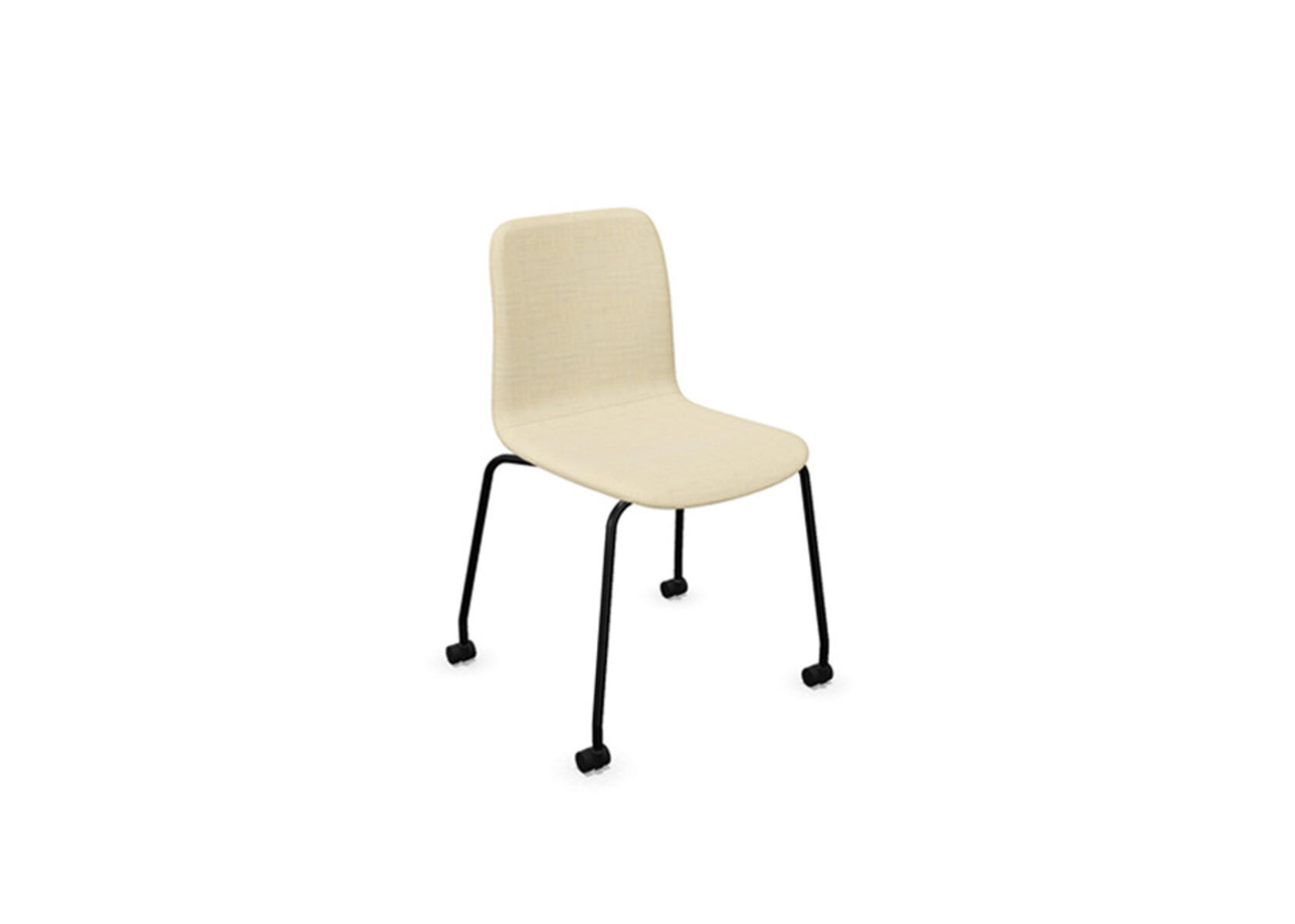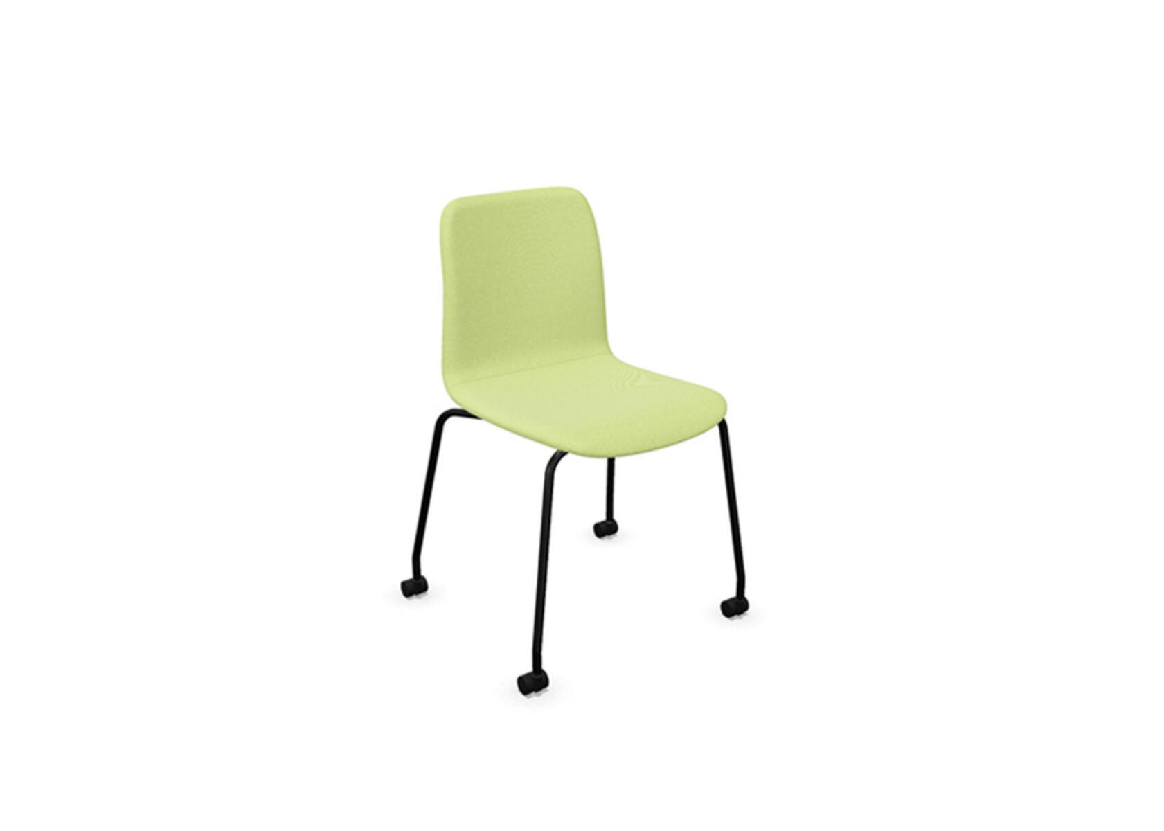 Sædeskål i formpresset krydsfinér polstret med koldskum, som giver både komfort og støtte. Stabilt pulverlakeret stel i Ø18 mm rør med møbelglidere, der beskytter gulvet. Armlæn fås som tilbehør. For ekstra fleksibilitet kan der tilkøbes koblings- og rækkekoblingsbeslag, som gør det nemt at skabe rækker eller gruppesætninger. Maks. belastning 110 kg. Stolen kan stables op til 6 stk.