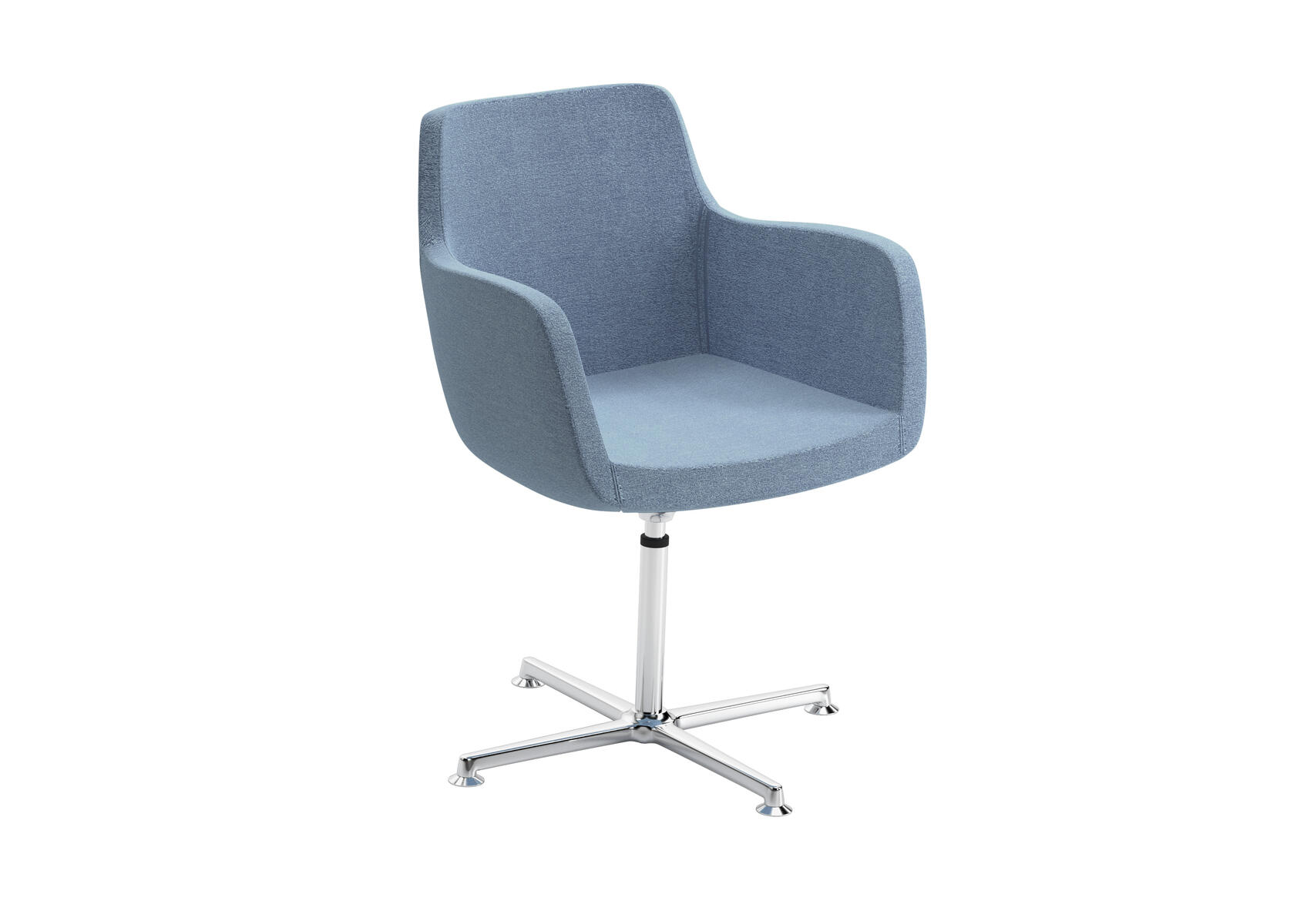 En multifunktionel drejestol som kan bruges til konferencerum, receptioner eller som besøgsstol. Fås i 9 forskellige farver i stoffet X2. Mål: 61x60x83 cm, siddehøjde 46 cm.