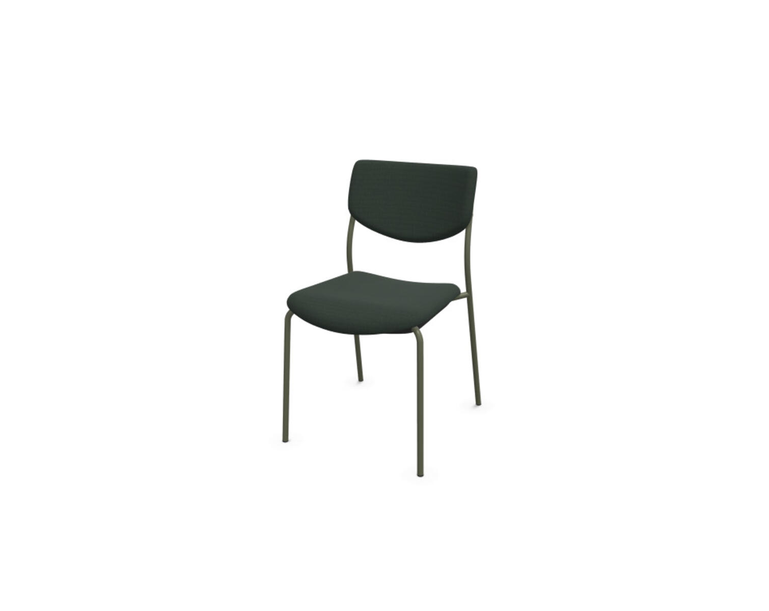 Stel i pulverlakeret metal. Sæde og ryg er betrukket med Cura, et alsidigt, tofarvet meleret møbelstof fremstillet af 100 % genanvendt polyester.