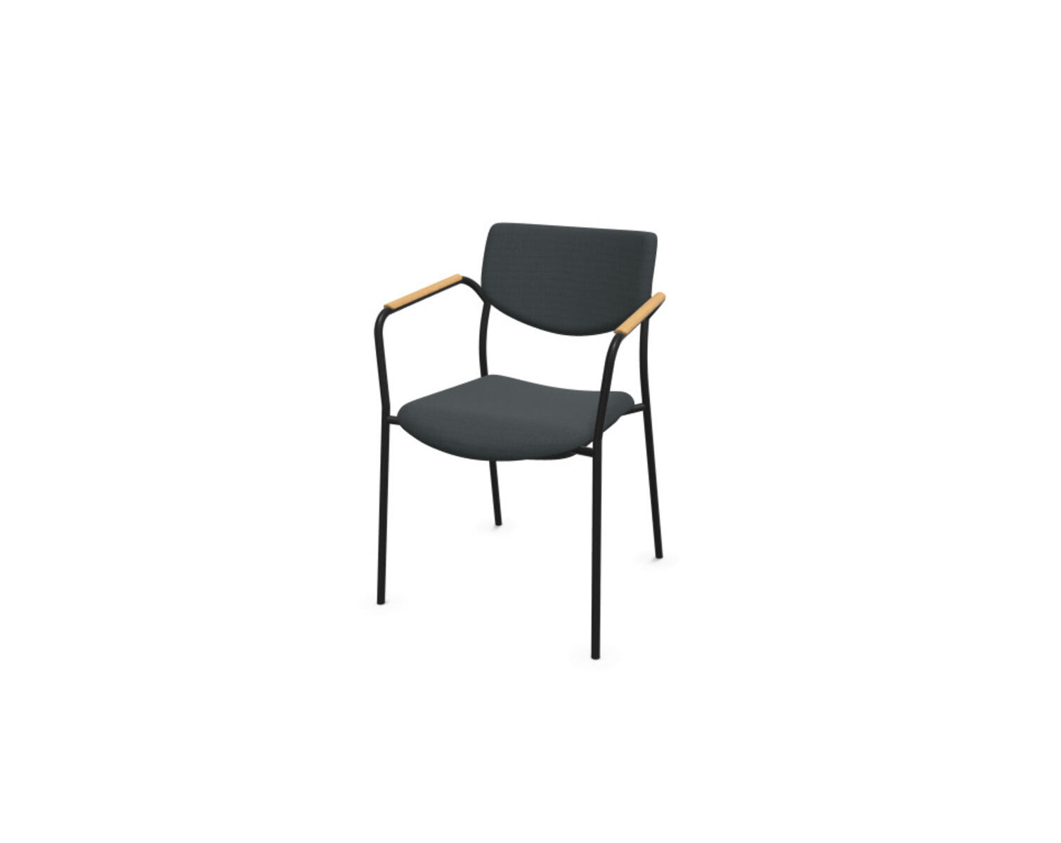 Sæde og ryg betrukket med Cura, et alsidigt, tofarvet meleret møbelstof fremstillet af 100 % genanvendt polyester.