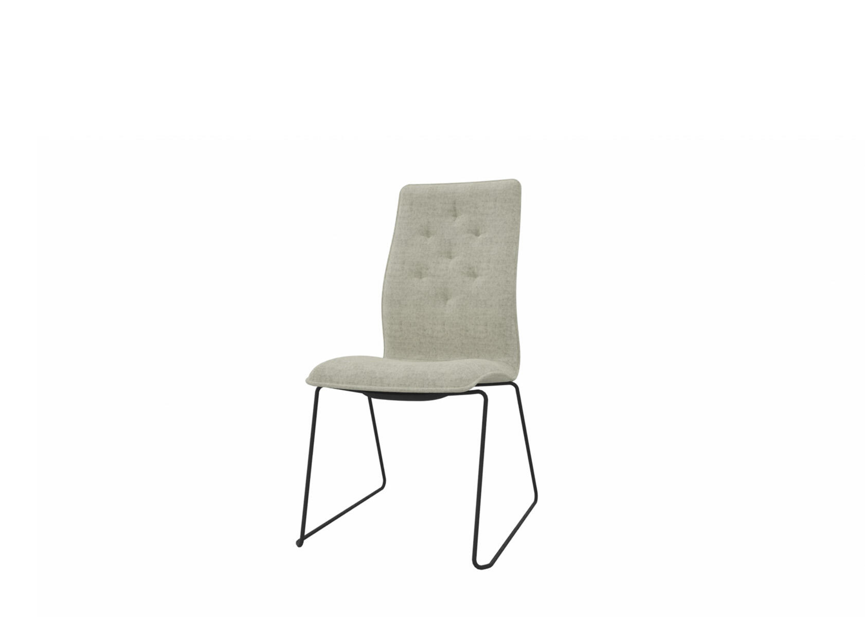 En tidløs, ergonomisk og behagelig stol med høj ryg og pikeret syning i ryglænet, som giver et elegant og blødt udtryk. Sædet er udført i formpresset finér med komfortabel polstring i koldskum for optimal støtte. Stolen har et stabilt, pulverlakeret medestel i Ø11 mm rør med filtbelagte møbelglidere, der skåner gulvet. Stolen kan stables i op til 5 stk. Armstøtte fås som tilvalg.