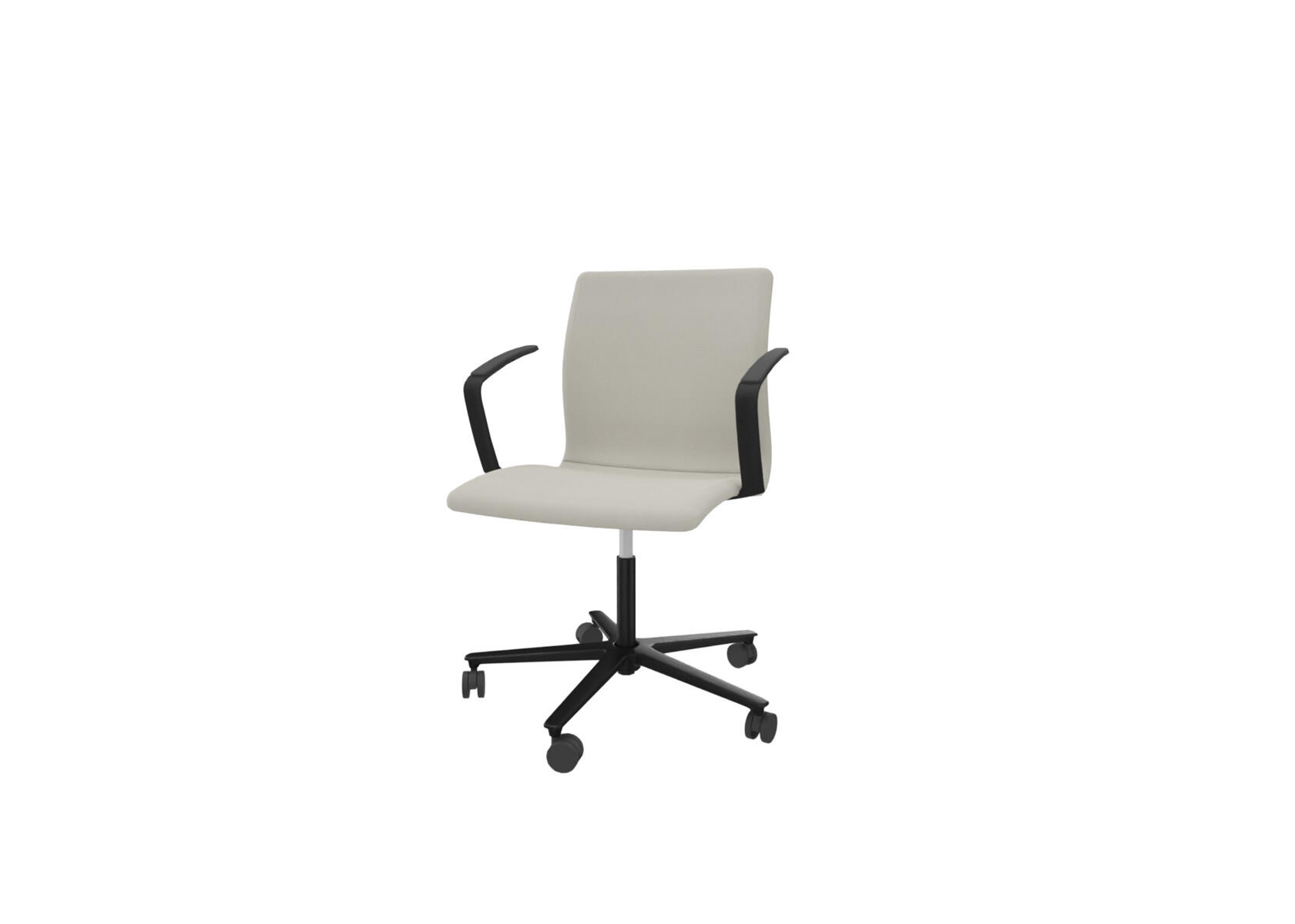 En tidløs, ergonomisk og komfortabel konferencestol til mødelokaler og konferencemiljøer. Den har en glat lav ryg og et sæde af formpresset finer polstret med koldskum, som sikrer både komfort og støtte. Vippefunktion med 7° bagud og 4° fremad. Sort metalkryds med 5 hårde hjul til bløde gulve. For ekstra komfort kan armlæn tilkøbes som et tilvalg.