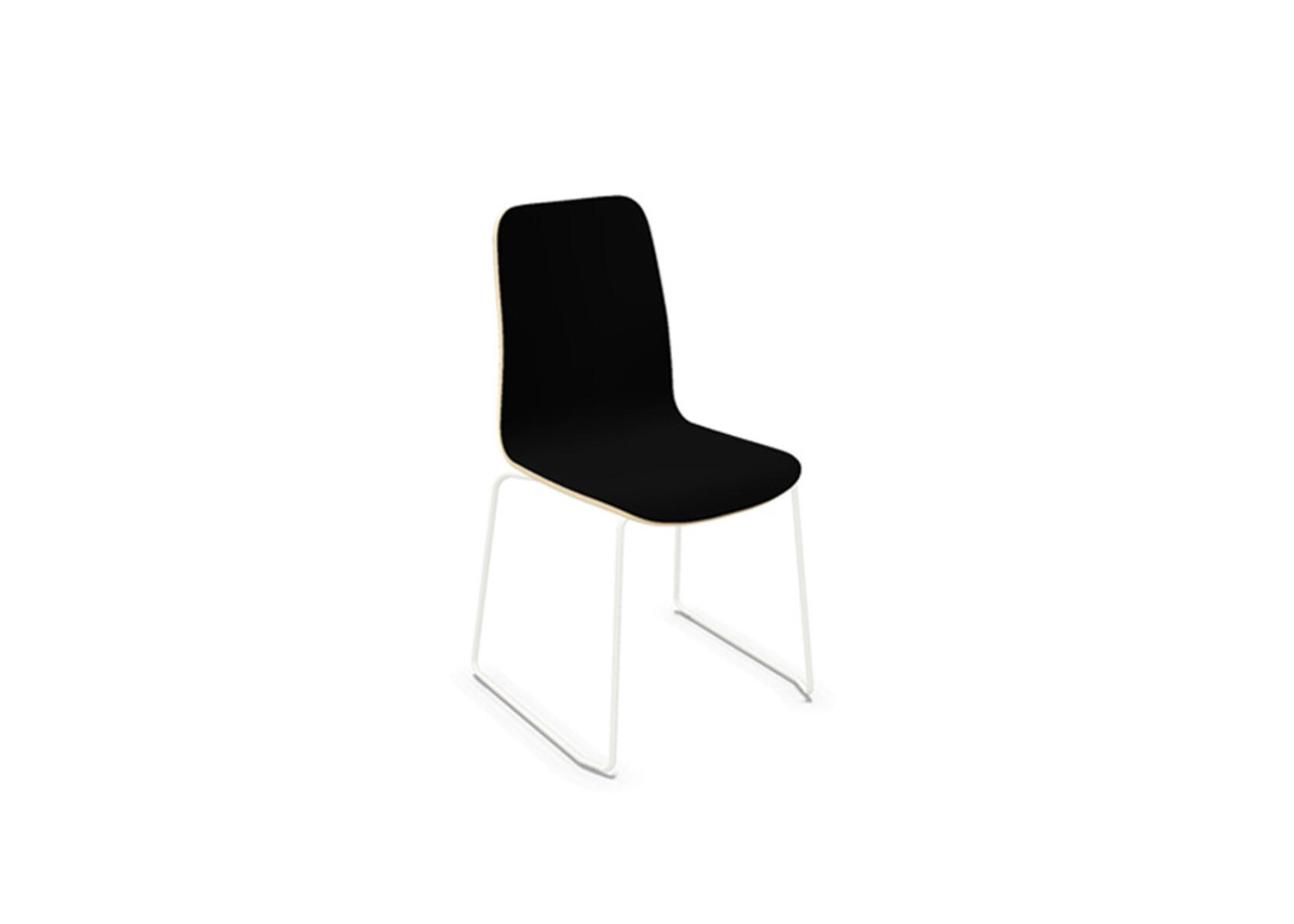 Sædeskål i formpresset krydsfinér polstret med koldskum, som giver både komfort og støtte. Stabilt pulverlakeret stel i Ø18 mm rør med møbelglidere, der beskytter gulvet. Armlæn fås som tilbehør. For ekstra fleksibilitet kan der tilkøbes koblings- og rækkekoblingsbeslag, som gør det nemt at skabe rækker eller gruppesætninger. Maks. belastning 110 kg. Stolen kan stables op til 6 stk.