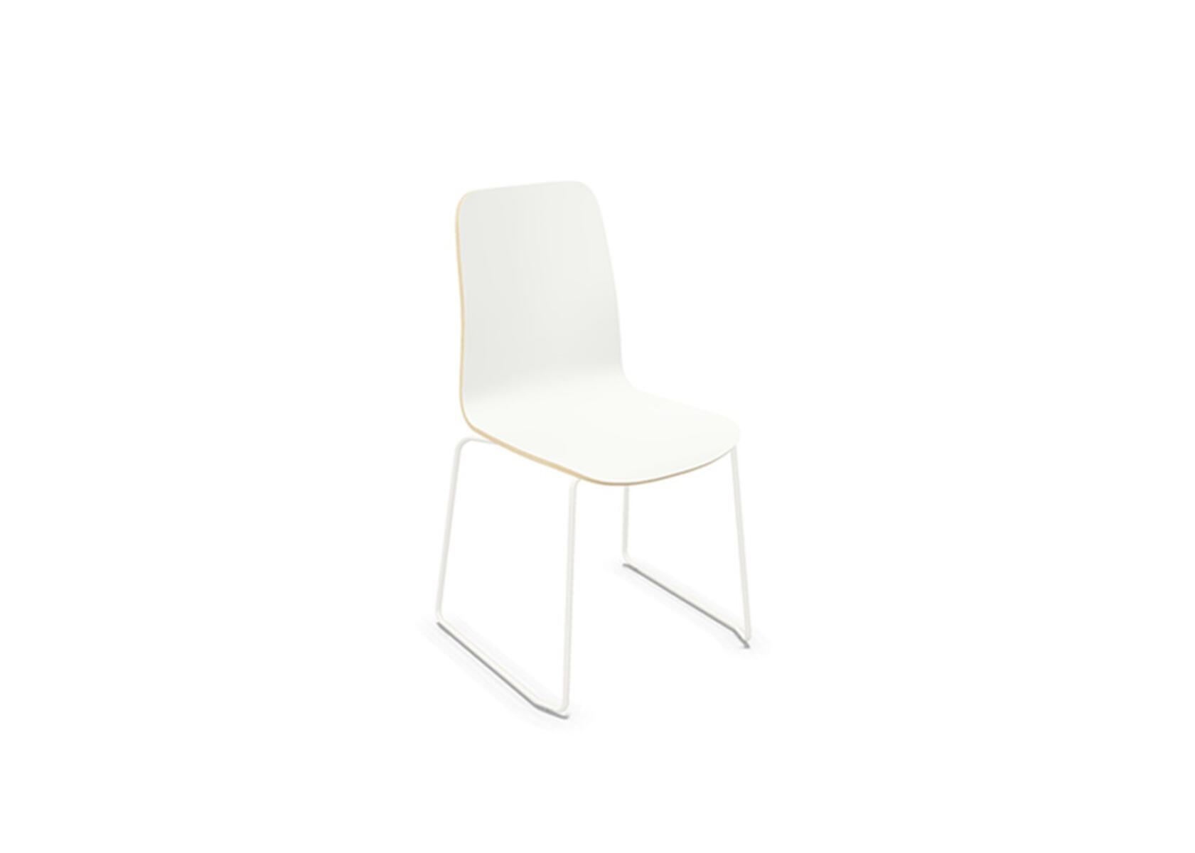 Sædeskål i formpresset krydsfinér belagt med højtrykslaminat. Stabilt pulverlakeret stel i Ø18 mm rør med møbelglidere, der beskytter gulvet. Armlæn fås som tilbehør. For ekstra fleksibilitet kan der tilkøbes koblings- og rækkekoblingsbeslag, som gør det nemt at skabe rækker eller gruppesætninger. Maks. belastning 110 kg. Stolen kan stables op til 6 stk.