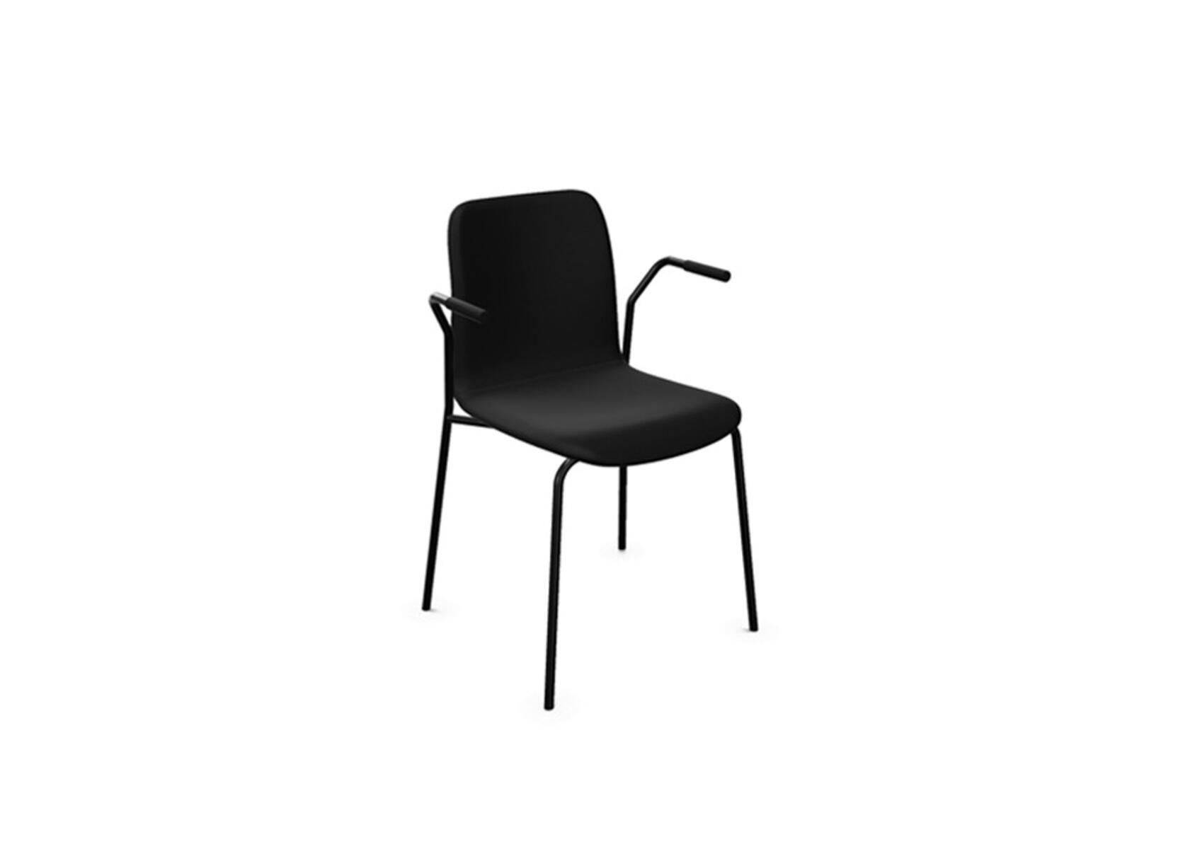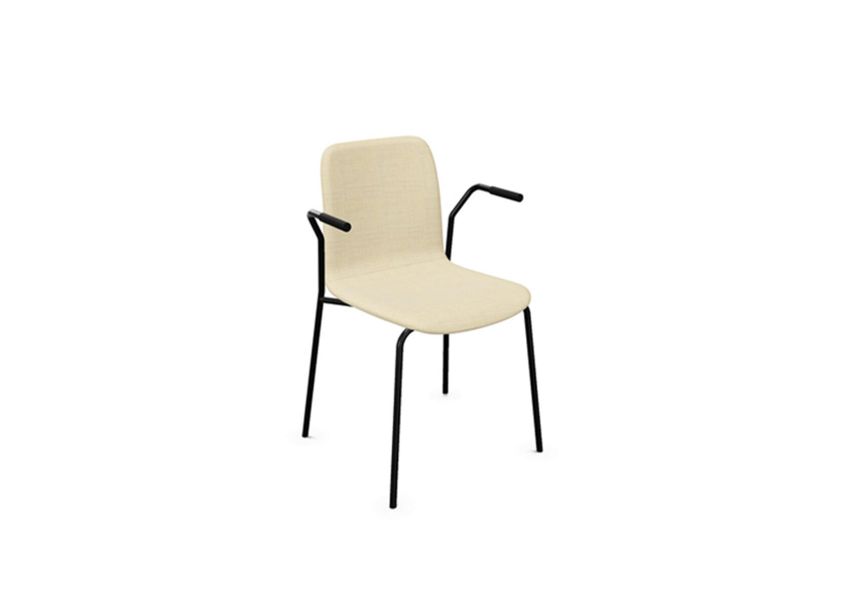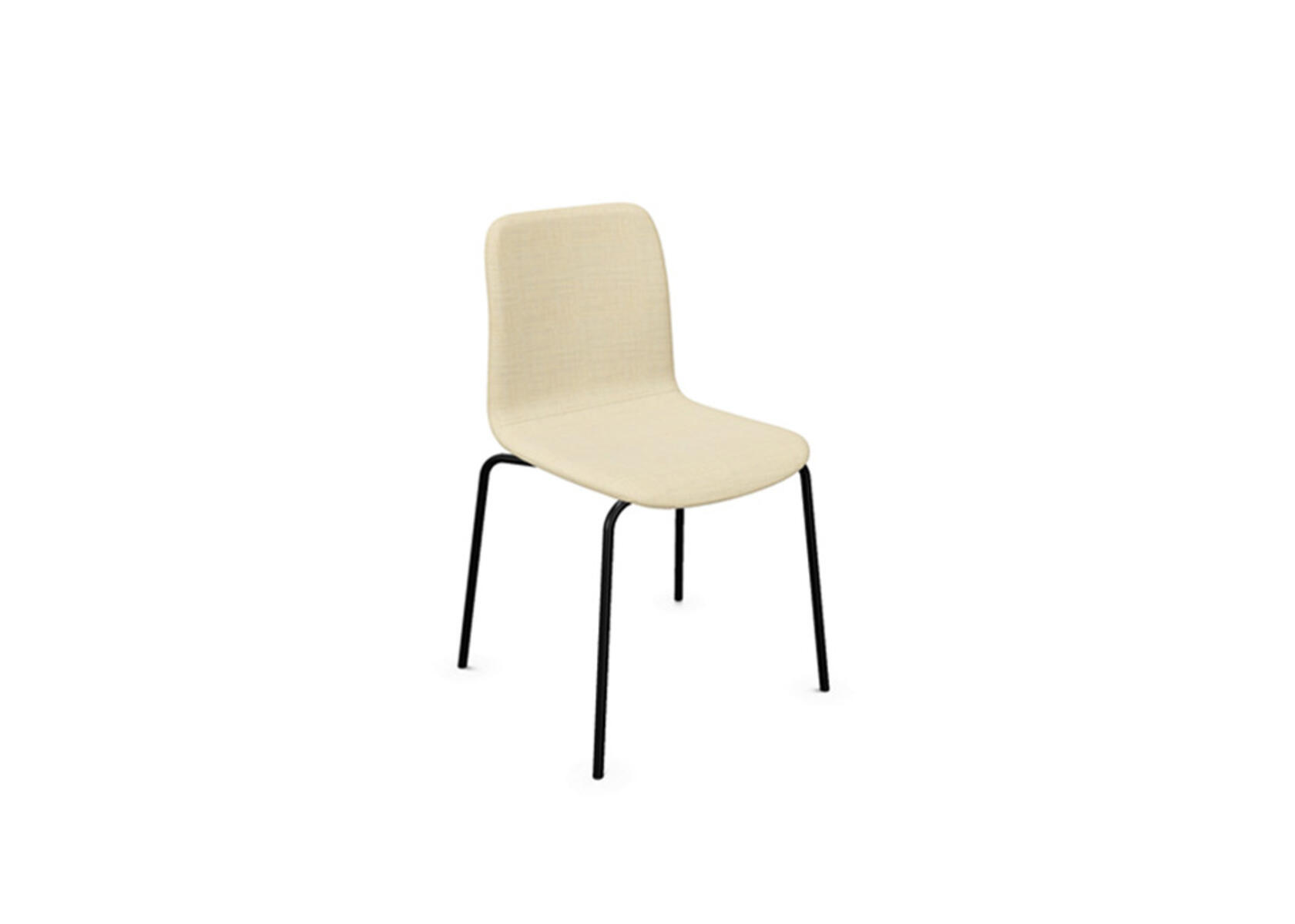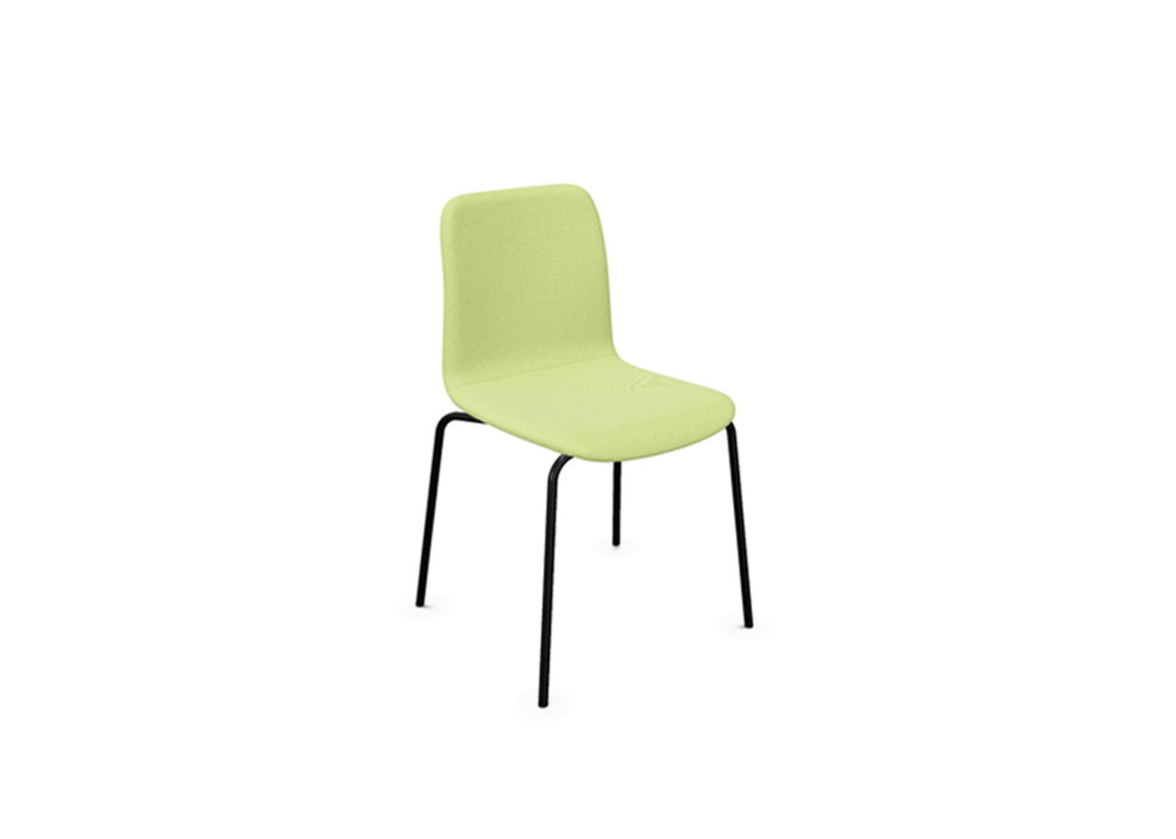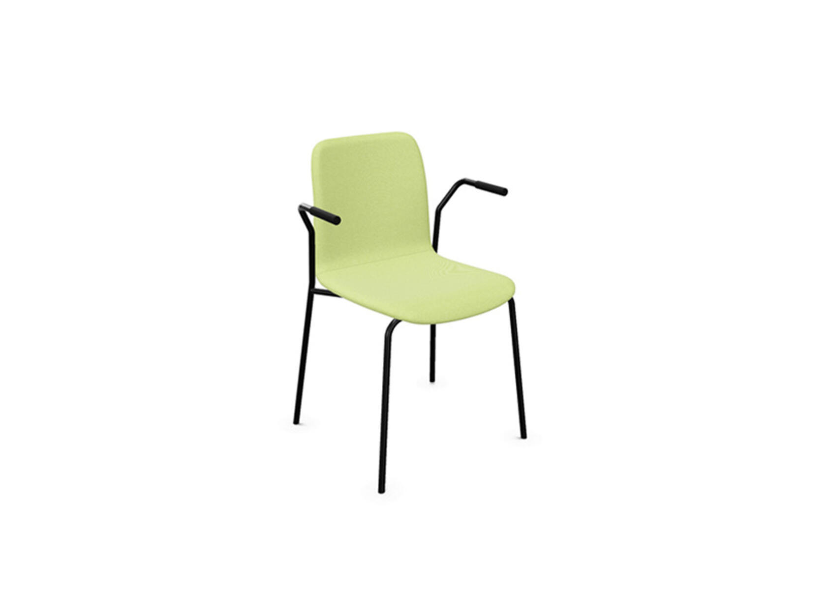 Sædeskål i formpresset krydsfinér polstret med koldskum, som giver både komfort og støtte. Stabilt pulverlakeret stel i Ø18 mm rør med møbelglidere, der beskytter gulvet. Armlæn fås som tilbehør. For ekstra fleksibilitet kan der tilkøbes koblings- og rækkekoblingsbeslag, som gør det nemt at skabe rækker eller gruppesætninger. Maks. belastning 110 kg. Stolen kan stables op til 6 stk.