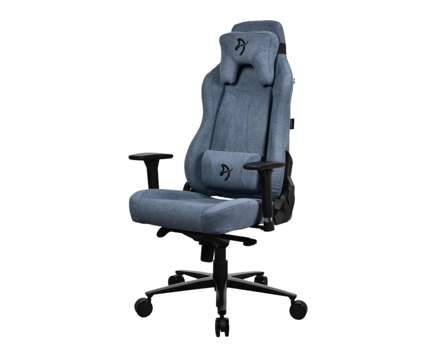 Ergonomisk gamingstol i slidstærkt polyesterstof. Bred sæde- og rygoverflade samt ekstra tyk polstring på sæde, ryglæn og armlæn giver høj komfort. Sort nylonkryds med egerformede dobbelthjul i nylon. Stolen kan låses i oprejst position eller vippe frit op til 12° med justerbar modstand. Justerbart ryglæn med 4 låsbare trin á 4°. 3D-armlæn – justerbare i højde, side og dybde. Letvægtskonstruktion for nem flytning. Højdejustering med gaslift, der understøtter op til 120 kg.