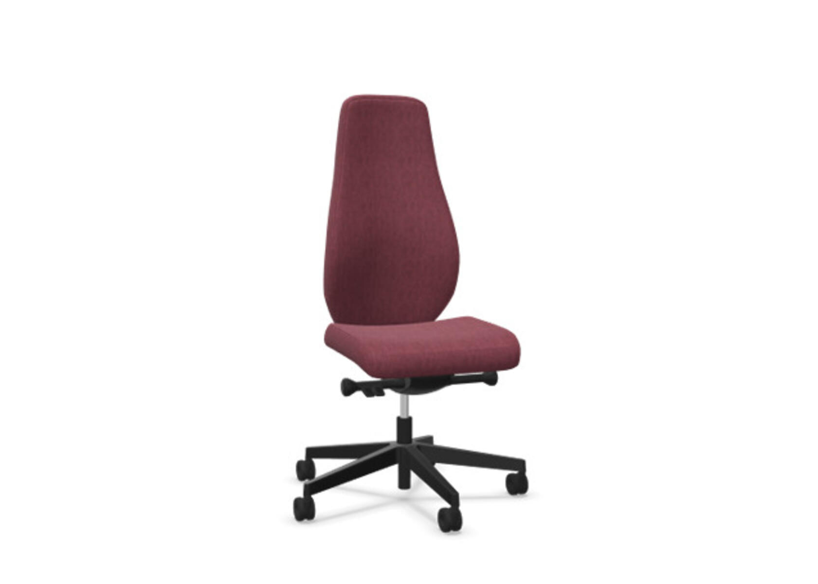 En stilren og ergonomisk kontorstol med fuldpolstret høj ryg og avanceret synkronmekanisme samt justerbar sædedybde, designet til at give støtte ved aktivt siddende arbejde hele dagen. Den avancerede, synkroniserede vippefunktion mellem ryg og sæde gør det nemt at skifte siddestilling og stadig sidde behageligt. Ryglænets hældningsvinkel på 23° er synkroniseret med sædets hældningsvinkel på 10°. Ryglænet kan låses i 5 positioner, og modstanden justeres enkelt via et drejegreb med 7 trin. Ryglænet kan højdeindstilles 70 mm med 13 låsepositioner. Sædedybden kan justeres 60 mm. En negativ sædehældning på –2°, synkroniseret med ryglænet ved 5°, giver optimal støtte i alle vippepositioner. Stolen har Anti-Shock funktion, som forhindrer, at ryglænet slår tilbage, når vippen låses op. Vælg mellem sort polyamidfodkryds eller poleret aluminium samt selvbremsende hjul til bløde eller hårde gulve. Som tilbehør kan der tilvælges lændestøtte (Shukra-mekanisme), som manuelt kan justeres 20 mm i dybden. Armlæn i 1D, 2D, 3D eller 4D sælges separat.