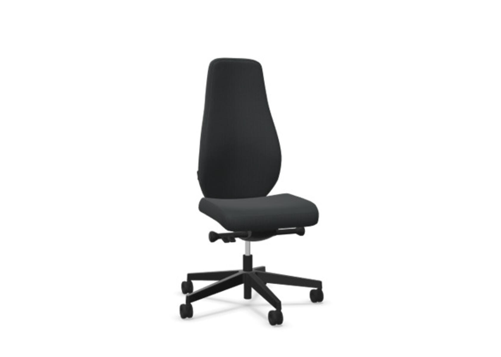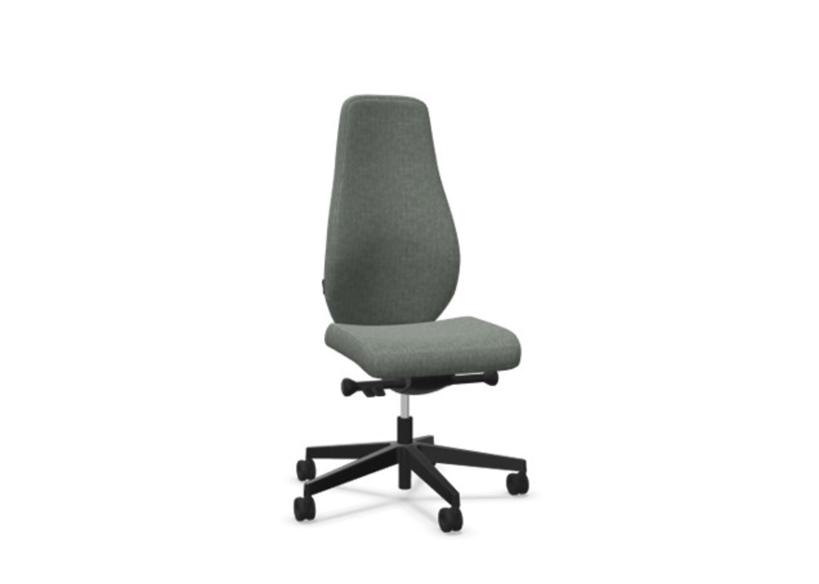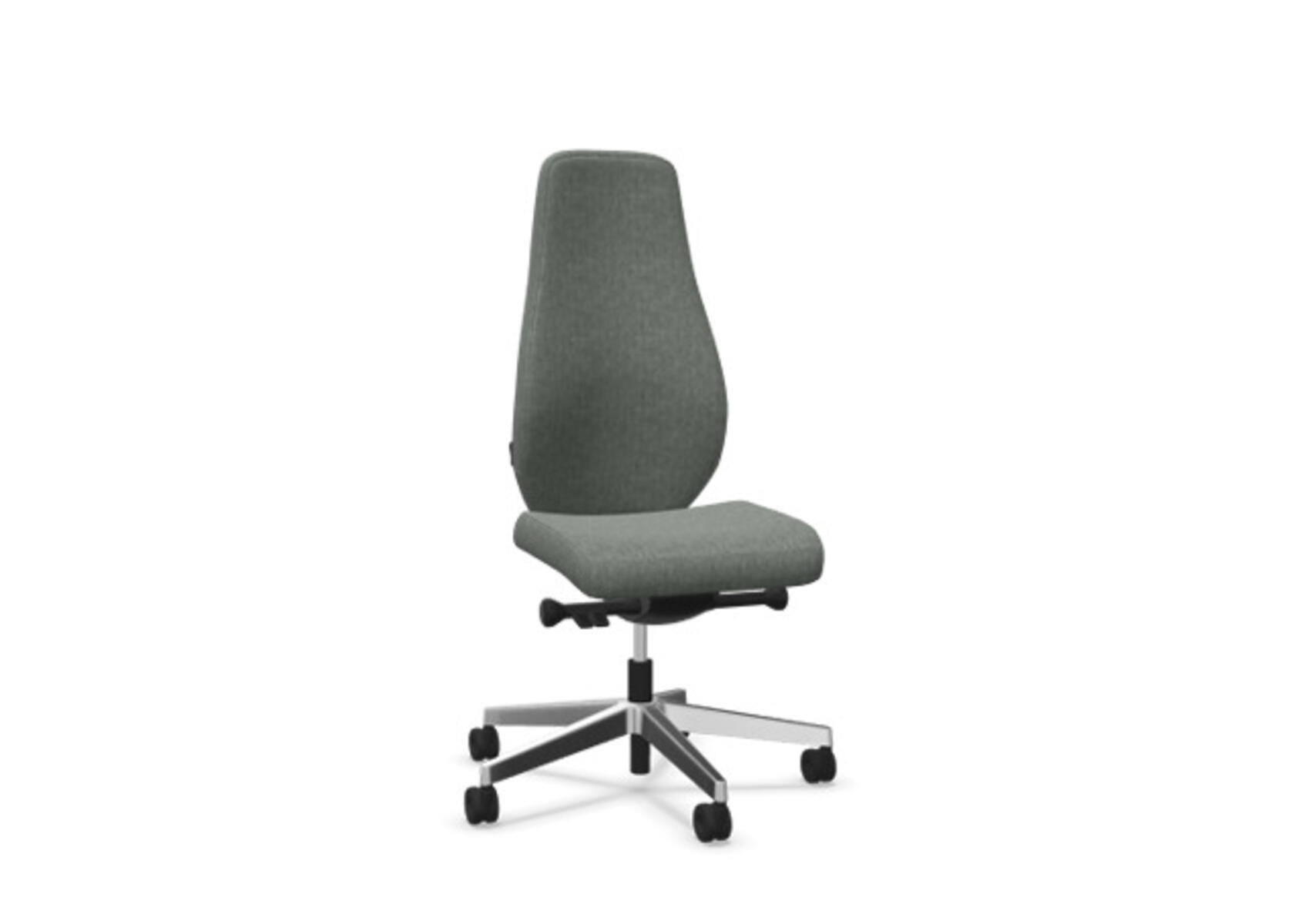 En stilren og ergonomisk kontorstol med fuldpolstret høj ryg og synkronmekanisme samt justerbar sædedybde, designet til at give støtte ved aktivt siddende arbejde hele dagen. Polstret i det slidstærke uldstof Remix 3. Den synkroniserede vippefunktion mellem ryg og sæde gør det nemt at variere siddestillingen og stadig sidde behageligt. Ryglænets hældningsvinkel på 20° er synkroniseret med sædets hældningsvinkel på 11°. Ryglænet kan låses i 5 positioner, og modstanden justeres enkelt via et drejegreb. Ryglænet kan højdeindstilles 70 mm med 13 låsepositioner. Sædedybden kan justeres 50 mm. Det justerbare, polstrede nakkestøtte giver ekstra komfort med både vinkel- og højdejustering over et interval på 100 mm. Stolen har Anti-Shock funktion, som forhindrer, at ryglænet slår tilbage, når vippen låses op. Vælg mellem sort polyamidfodkryds eller poleret aluminium samt selvbremsende hjul til bløde eller hårde gulve. Som tilbehør kan der tilvælges lændestøtte (Shukra-mekanisme), som manuelt kan justeres 20 mm i dybden. Armlæn i 1D, 2D, 3D eller 4D sælges separat.