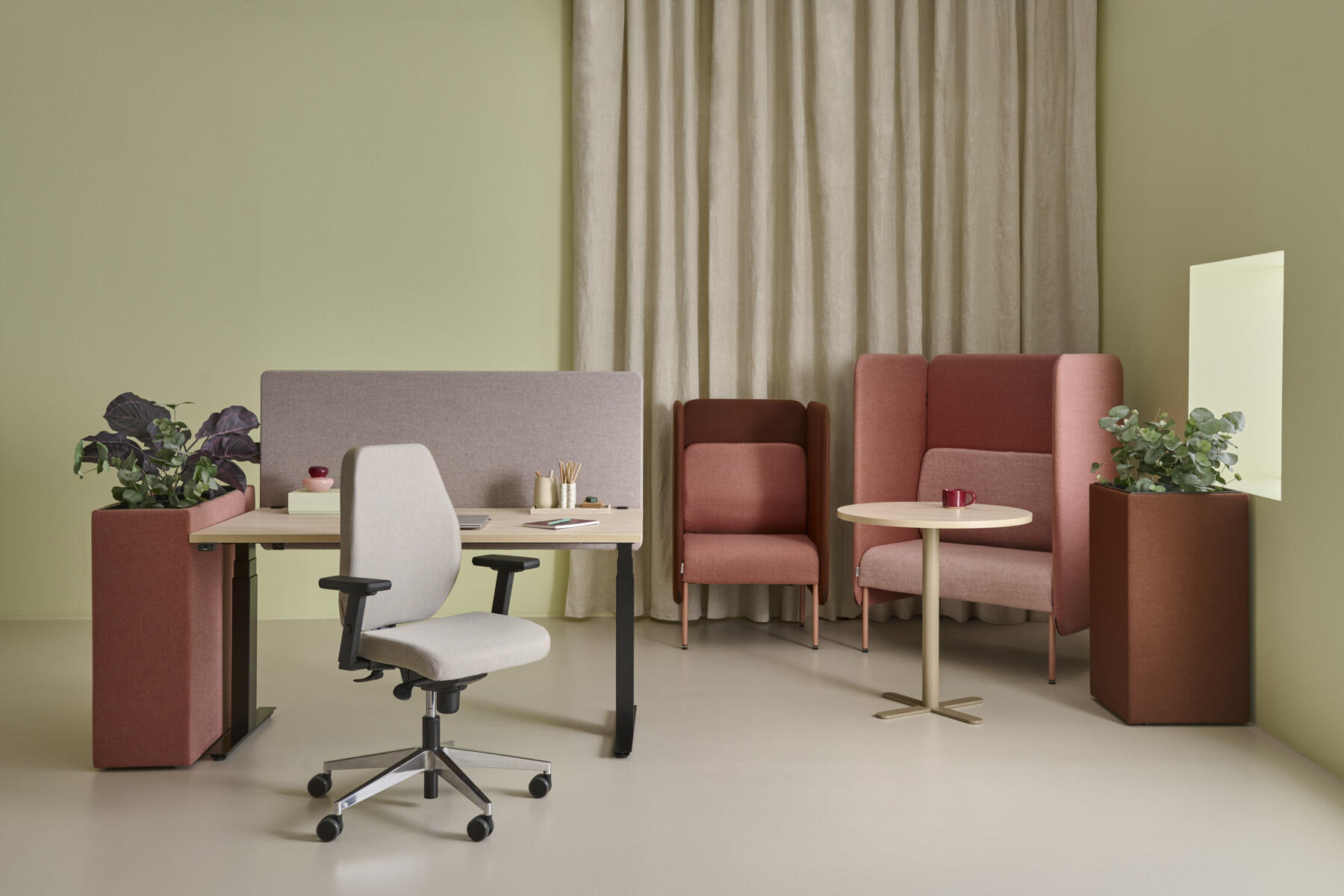 En stilren og ergonomisk kontorstol med fuldpolstret lav ryg og synkronmekanisme samt justerbar sædedybde, designet til at give støtte ved aktivt siddende arbejde hele dagen. Polstret i det slidstærke uldstof Remix 3. Den synkroniserede vippefunktion mellem ryg og sæde gør det nemt at variere siddestillingen og stadig sidde behageligt. Ryglænets hældningsvinkel på 20° er synkroniseret med sædets hældningsvinkel på 11°. Ryglænet kan låses i 5 positioner, og modstanden justeres enkelt via et drejegreb. Ryglænet kan højdeindstilles 70 mm med 13 låsepositioner. Sædedybden kan justeres 50 mm. Stolen har Anti-Shock funktion, som forhindrer, at ryglænet slår tilbage, når vippen låses op. Vælg mellem sort polyamidfodkryds eller poleret aluminium samt selvbremsende hjul til bløde eller hårde gulve. Som tilbehør kan der tilvælges lændestøtte (Shukra-mekanisme), som manuelt kan justeres 20 mm i dybden. Armlæn i 1D, 2D, 3D eller 4D sælges separat.