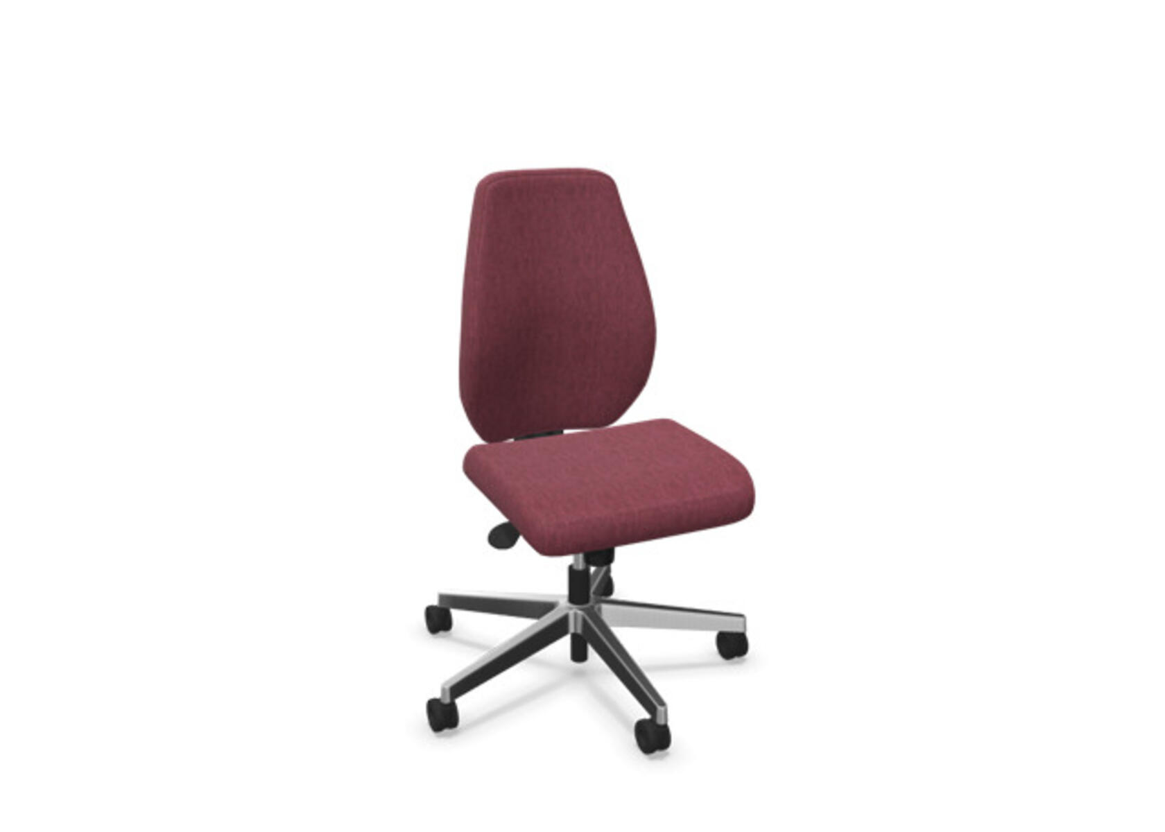 n stilren og ergonomisk kontorstol med fuldpolstret lav ryg og synkronmekanisme, designet til at give støtte ved aktivt siddende arbejde hele dagen. Den synkroniserede vippefunktion mellem ryg og sæde gør det nemt at variere siddestillingen og stadig sidde behageligt. Ryglænets hældningsvinkel på 20° er synkroniseret med sædets hældningsvinkel på 11°. Ryglænet kan låses i 5 positioner, og modstanden justeres enkelt via et drejegreb. Ryglænet kan højdeindstilles 70 mm med 13 låsepositioner. Stolen har Anti-Shock funktion, som forhindrer at ryglænet slår tilbage, når vippen låses op. Vælg mellem sort polyamidfodkryds eller poleret aluminium samt selvbremsende hjul til bløde eller hårde gulve. Som tilbehør kan der tilvælges lændestøtte (Shukra-mekanisme), som manuelt kan justeres 20 mm i dybden. Armlæn i 1D, 2D, 3D eller 4D sælges separat.