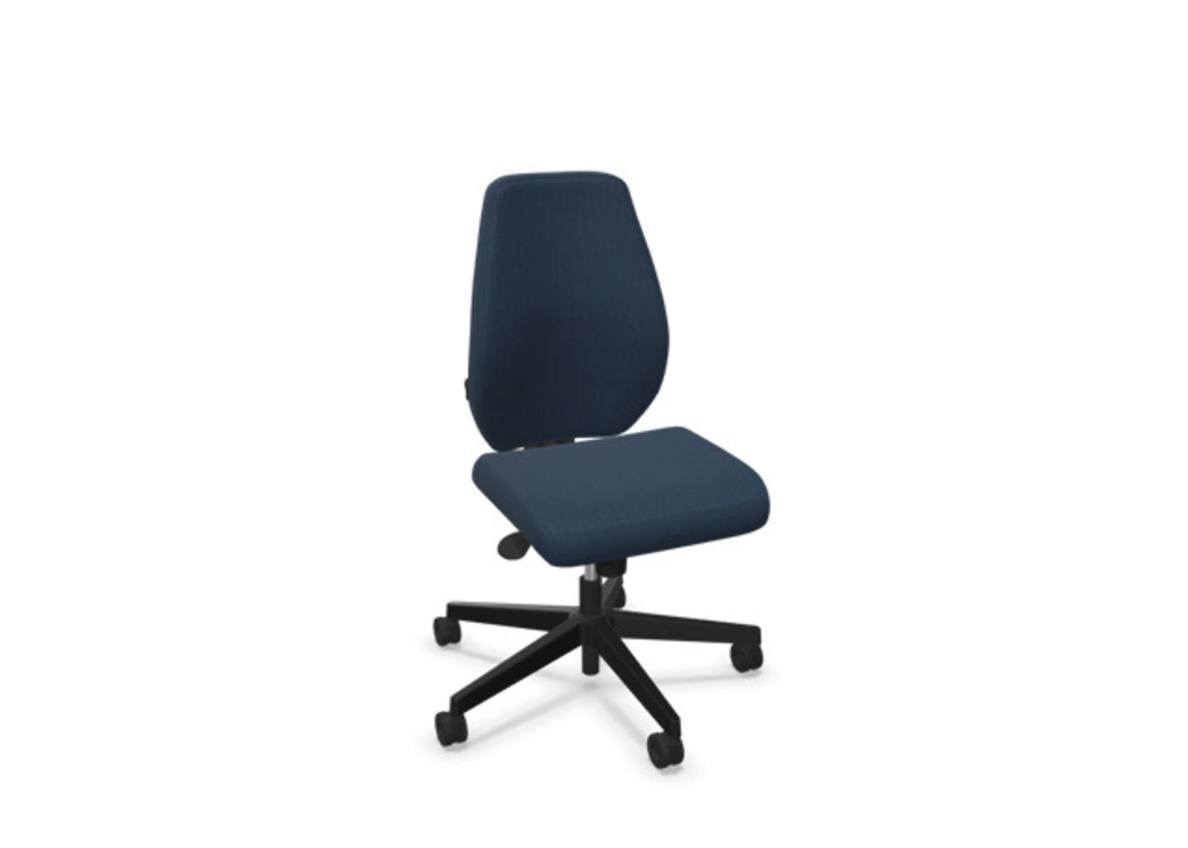En stilren og ergonomisk kontorstol med fuldpolstret medium ryg og synkronmekanisme, designet til at give støtte ved aktivt siddende arbejde hele dagen. Den synkroniserede vippefunktion mellem ryg og sæde gør det nemt at variere siddestillingen og stadig sidde behageligt. Ryglænets hældningsvinkel på 20° er synkroniseret med sædets hældningsvinkel på 11°. Ryglænet kan låses i 5 positioner, og modstanden justeres enkelt via et drejegreb. Ryglænet kan højdeindstilles 70 mm med 13 låsepositioner. Stolen har Anti-Shock funktion, som forhindrer, at ryglænet slår tilbage, når vippen låses op. Vælg mellem sort polyamidfodkryds eller poleret aluminium samt selvbremsende hjul til bløde eller hårde gulve. Som tilbehør kan der tilvælges lændestøtte (Shukra-mekanisme), som manuelt kan justeres 20 mm i dybden. Armlæn i 1D, 2D, 3D eller 4D sælges separat.