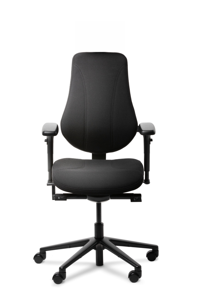 Kontorstol med synkronmekanisne, kan indstilles i 5 forskellige indstillinger. Højdejusterbar med gas. Ryggen kan indstilles i højden. Højdejusterbare armlæn medfølger. Totalhøjde 96-114 cm, siddebredde 42cm, siddedybde 46 cm, fra gulv til sæde 45-57 cm.