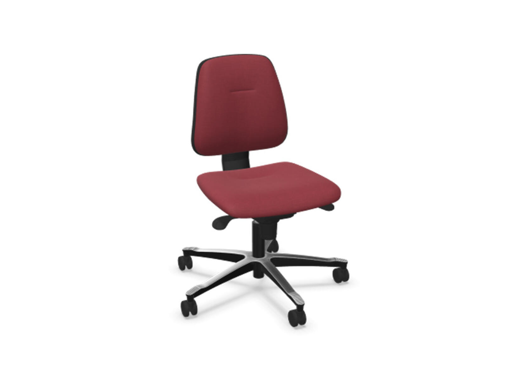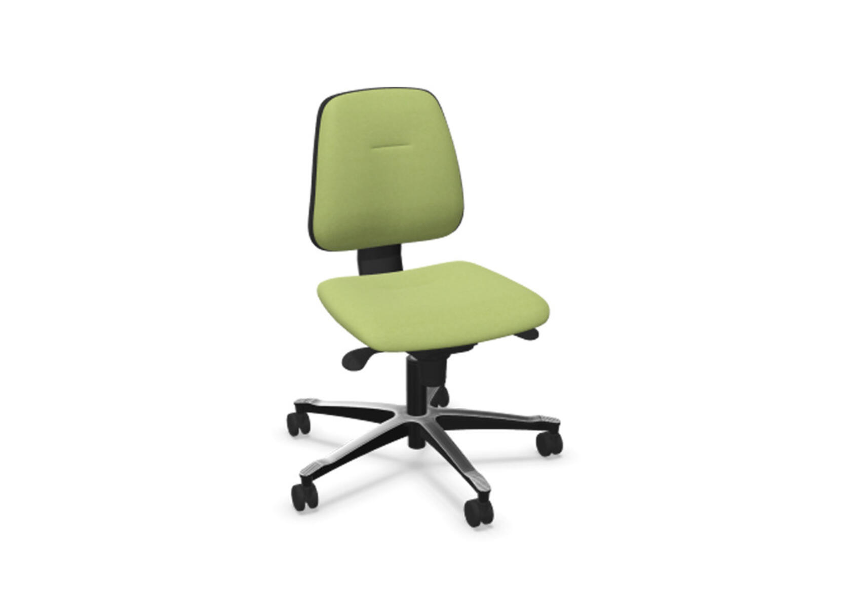 Ergonomisk kontorstol med delvist polstret lav ryg og synkronmekanisme, designet til at give støtte ved aktivt siddende arbejde hele dagen. Ryglænet kan vinkles op til 20°, synkroniseret med sædets 11°, og låses i fem positioner for personlig tilpasning. Modstanden justeres nemt med et drejehåndtag, og højden kan reguleres 75 mm med 13 låsepunkter. Anti-Shock-funktion forhindrer, at ryglænet slår tilbage ved oplåsning. Vælg mellem sort polyamid- eller poleret aluminiumsfod samt selvbremsende hjul til bløde eller hårde gulve. Armlæn (2D, 3D eller 4D) fås som tilbehør.