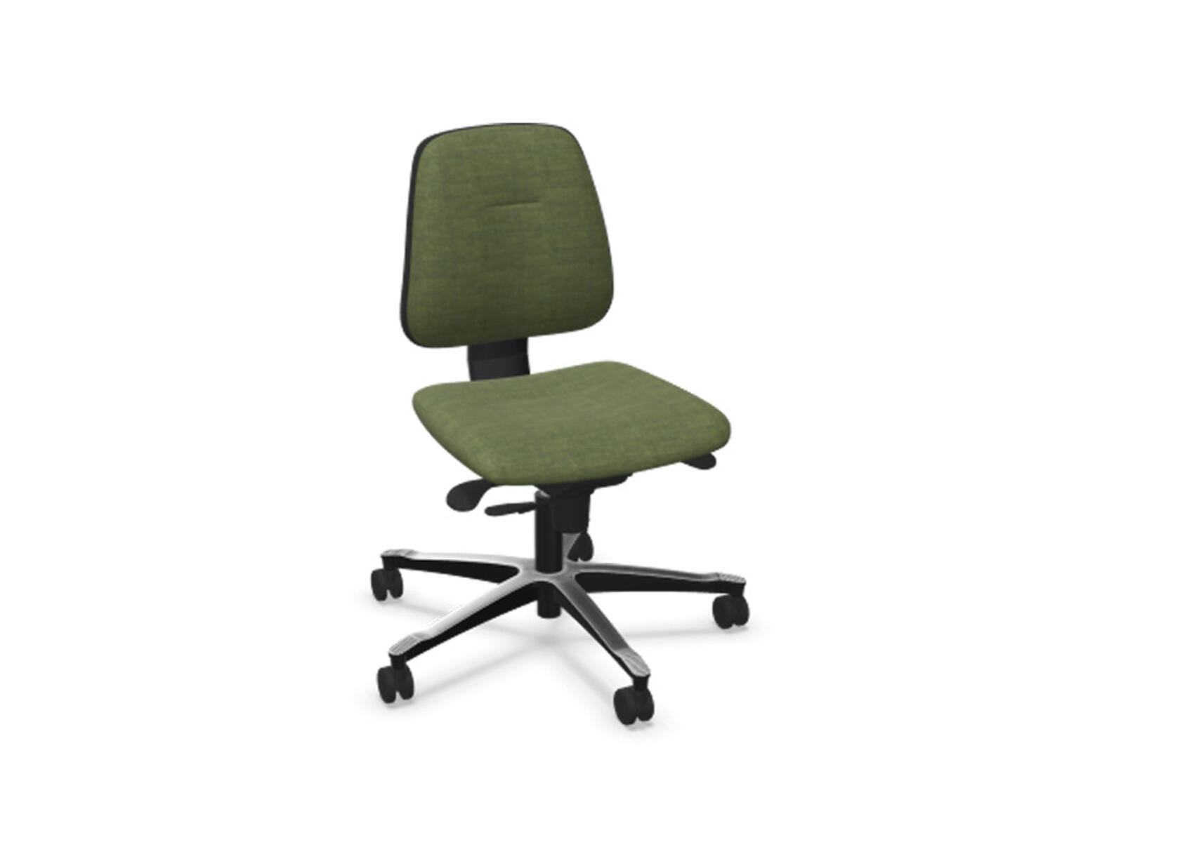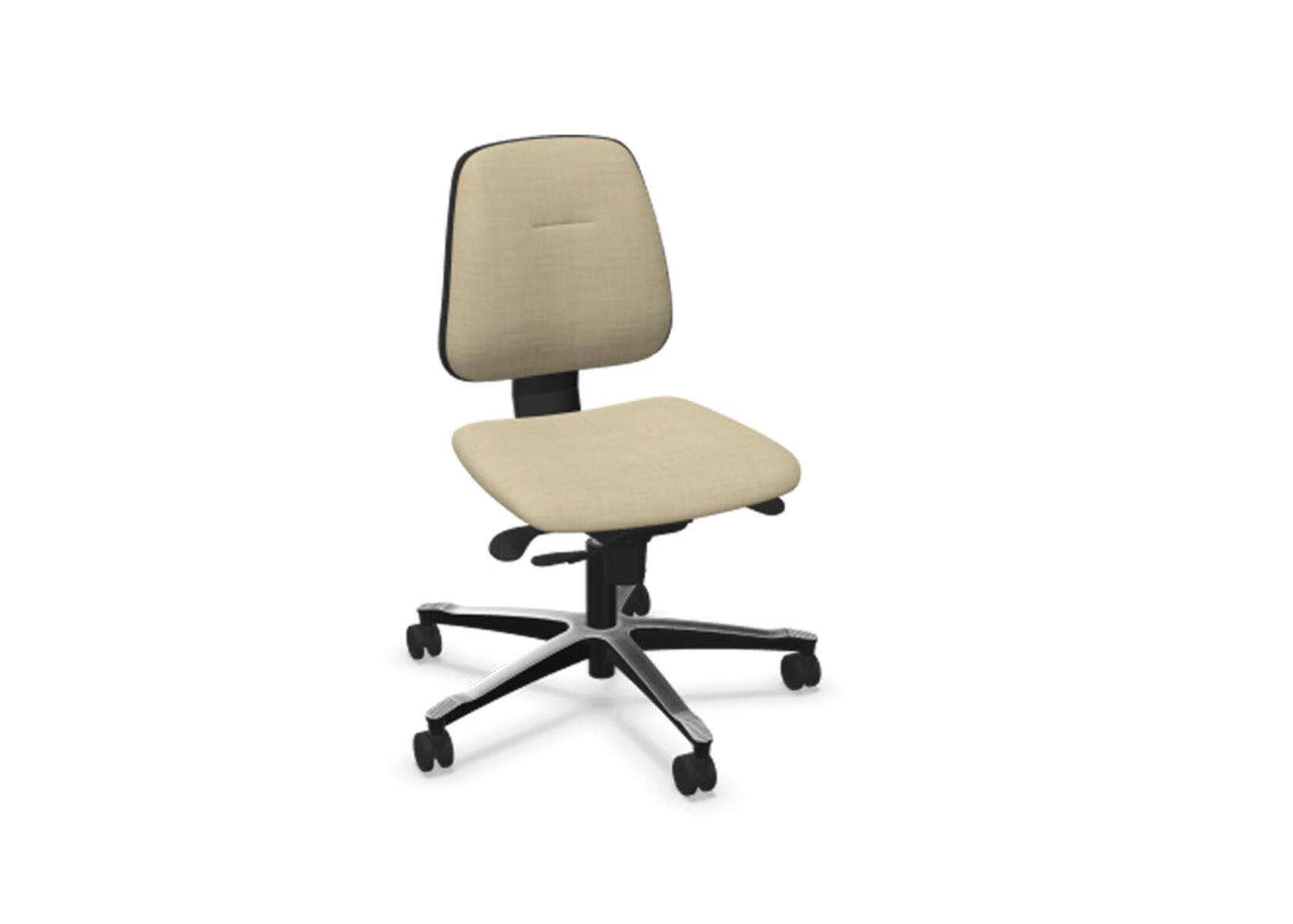 Ergonomisk kontorstol med delvist polstret lav ryg og synkronmekanisme, designet til at give støtte ved aktivt siddende arbejde hele dagen. Ryglænet kan vinkles op til 20°, synkroniseret med sædets 11°, og låses i fem positioner for personlig tilpasning. Modstanden justeres nemt med et drejehåndtag, og højden kan reguleres 75 mm med 13 låsepunkter. Anti-Shock-funktion forhindrer, at ryglænet slår tilbage ved oplåsning. Vælg mellem sort polyamid- eller poleret aluminiumsfod samt selvbremsende hjul til bløde eller hårde gulve. Armlæn (2D, 3D eller 4D) fås som tilbehør.