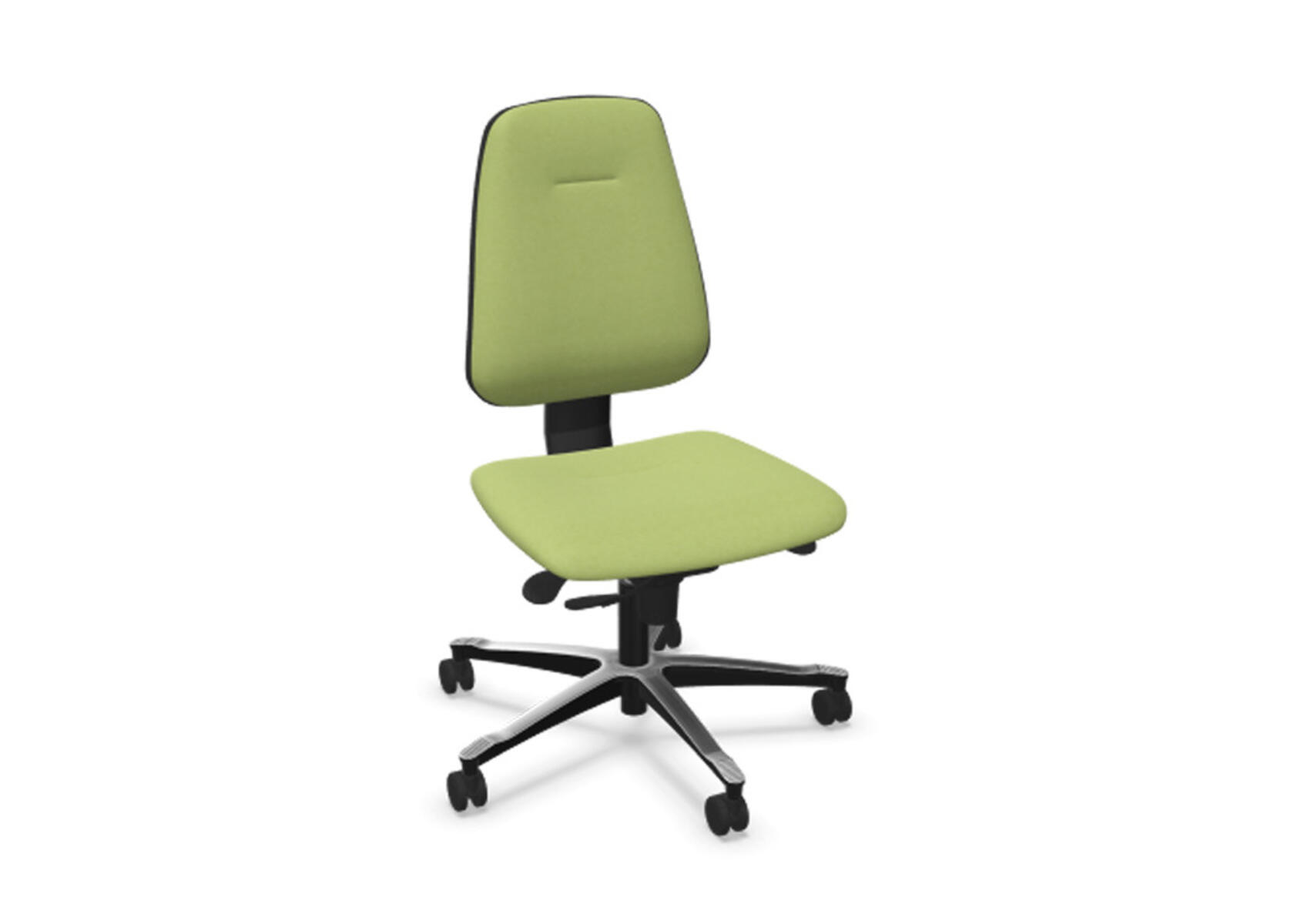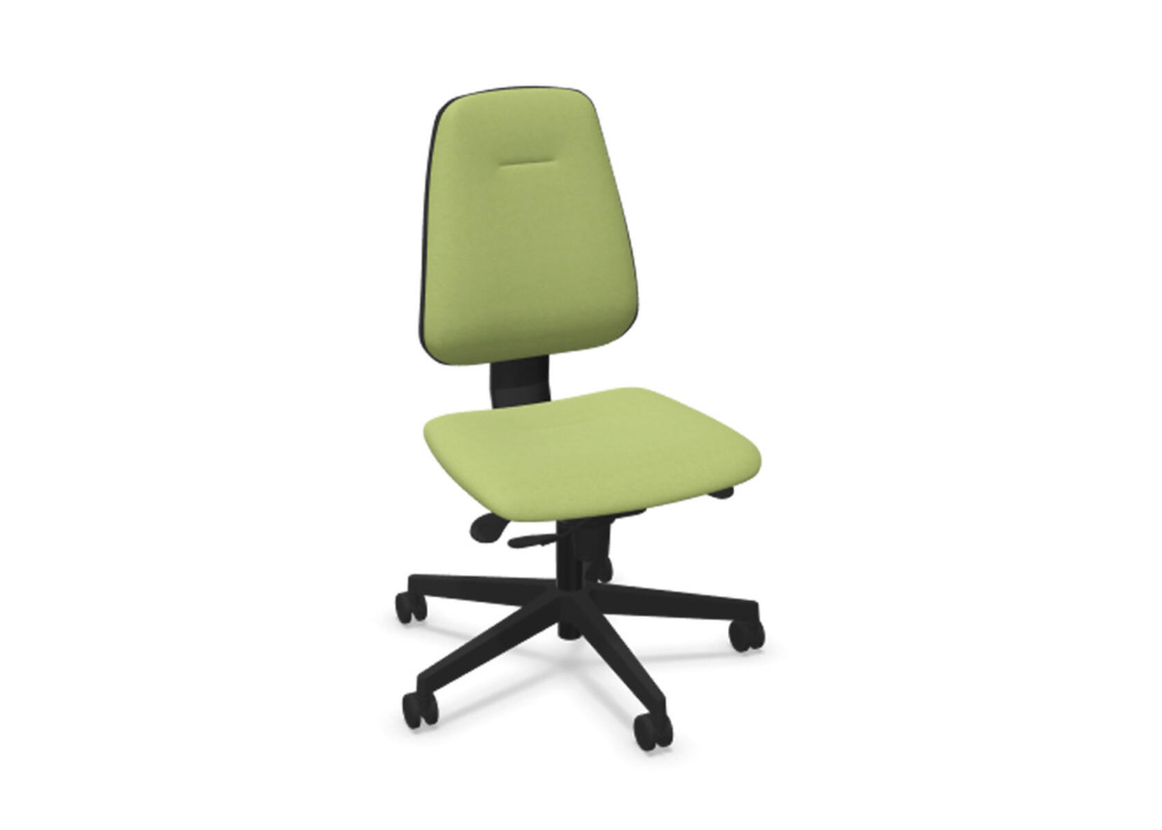 Ergonomisk kontorstol med delvist polstret lav ryg og synkronmekanisme, designet til at give støtte ved aktivt siddende arbejde hele dagen. Ryglænet kan vinkles op til 20°, synkroniseret med sædets 11°, og låses i fem positioner for personlig tilpasning. Modstanden justeres nemt med et drejehåndtag, og højden kan reguleres 75 mm med 13 låsepunkter. Anti-Shock-funktion forhindrer, at ryglænet slår tilbage ved oplåsning. Vælg mellem sort polyamid- eller poleret aluminiumsfod samt selvbremsende hjul til bløde eller hårde gulve. Armlæn (2D, 3D eller 4D) fås som tilbehør.