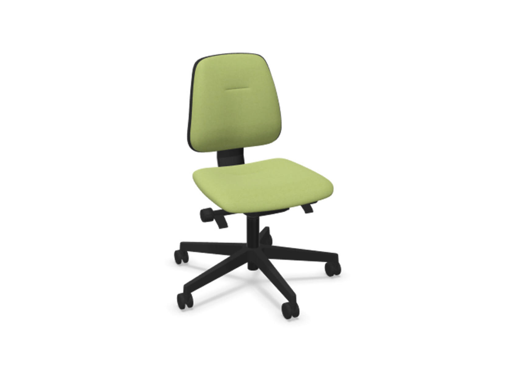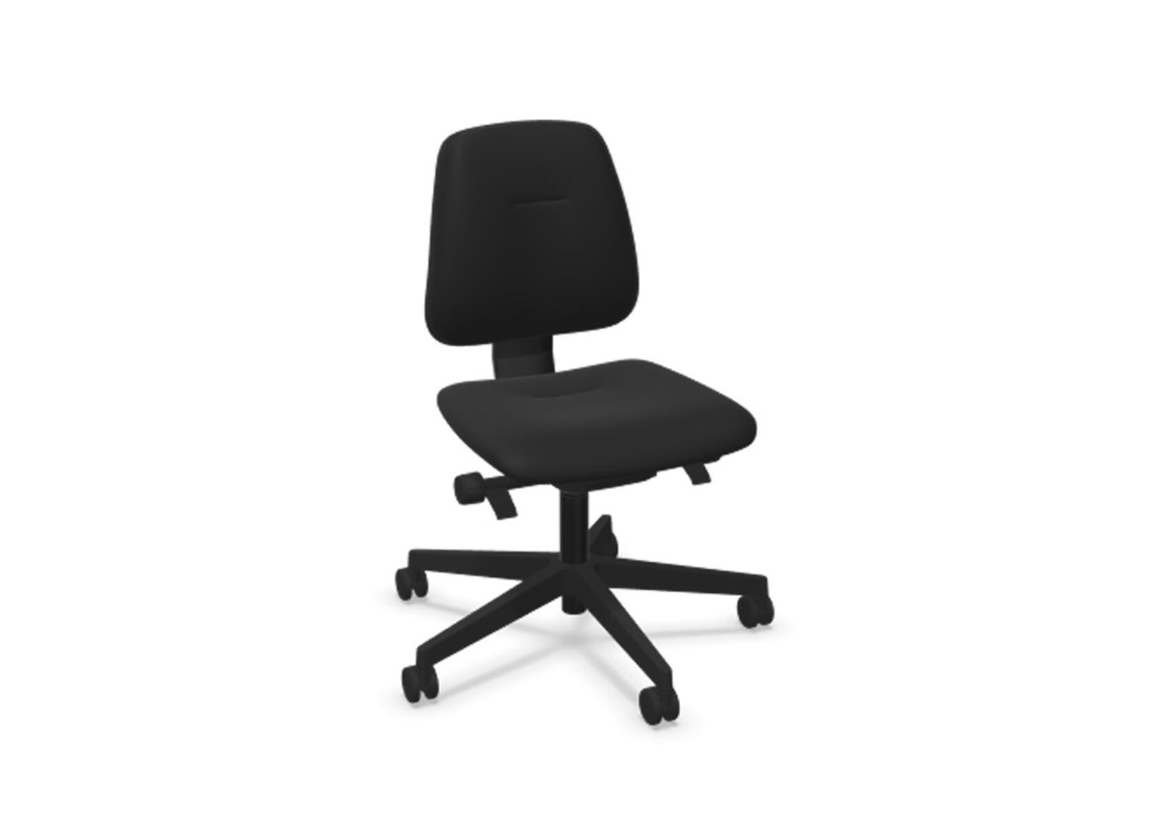 Ergonomisk kontorstol med delvist polstret lav ryg og synkronmekanisme samt justerbar sædedybde. Designet til at give støtte ved aktivt siddende arbejde hele dagen. Ryglænet kan vinkles op til 20°, synkroniseret med sædets 11°, og låses i fem positioner for personlig komfort. Modstanden justeres nemt med et drejehåndtag, og højden kan reguleres 70 mm med 13 låsepunkter. Sædedybden kan justeres 50 mm. Anti-Shock-funktion forhindrer, at ryglænet slår tilbage ved oplåsning. Vælg mellem sort polyamid- eller poleret aluminiumsfod samt selvbremsende hjul til bløde eller hårde gulve. Armlæn (2D, 3D eller 4D) fås som tilbehør.