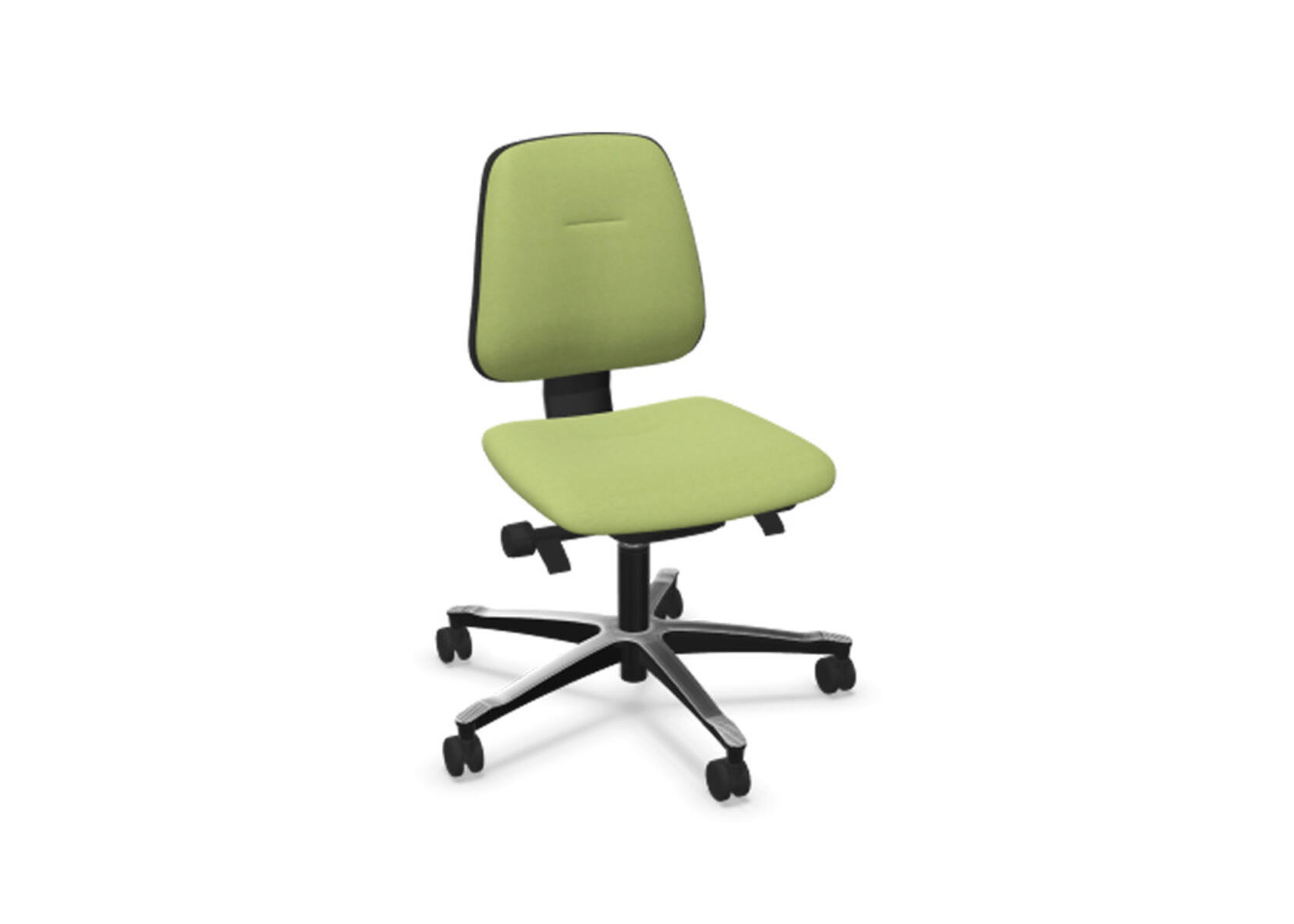 Ergonomisk kontorstol med delvist polstret lav ryg og synkronmekanisme, designet til at give støtte ved aktivt siddende arbejde hele dagen. Ryglænet kan vinkles op til 20°, synkroniseret med sædets 11°, og låses i fem positioner for personlig tilpasning. Modstanden justeres nemt med et drejehåndtag, og højden kan reguleres 75 mm med 13 låsepunkter. Anti-Shock-funktion forhindrer, at ryglænet slår tilbage ved oplåsning. Vælg mellem sort polyamid- eller poleret aluminiumsfod samt selvbremsende hjul til bløde eller hårde gulve. Armlæn (2D, 3D eller 4D) fås som tilbehør.