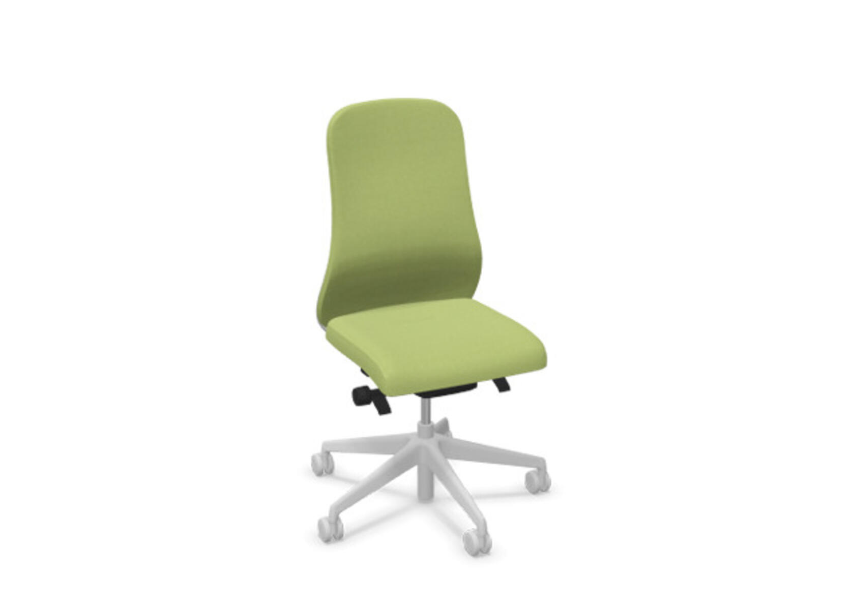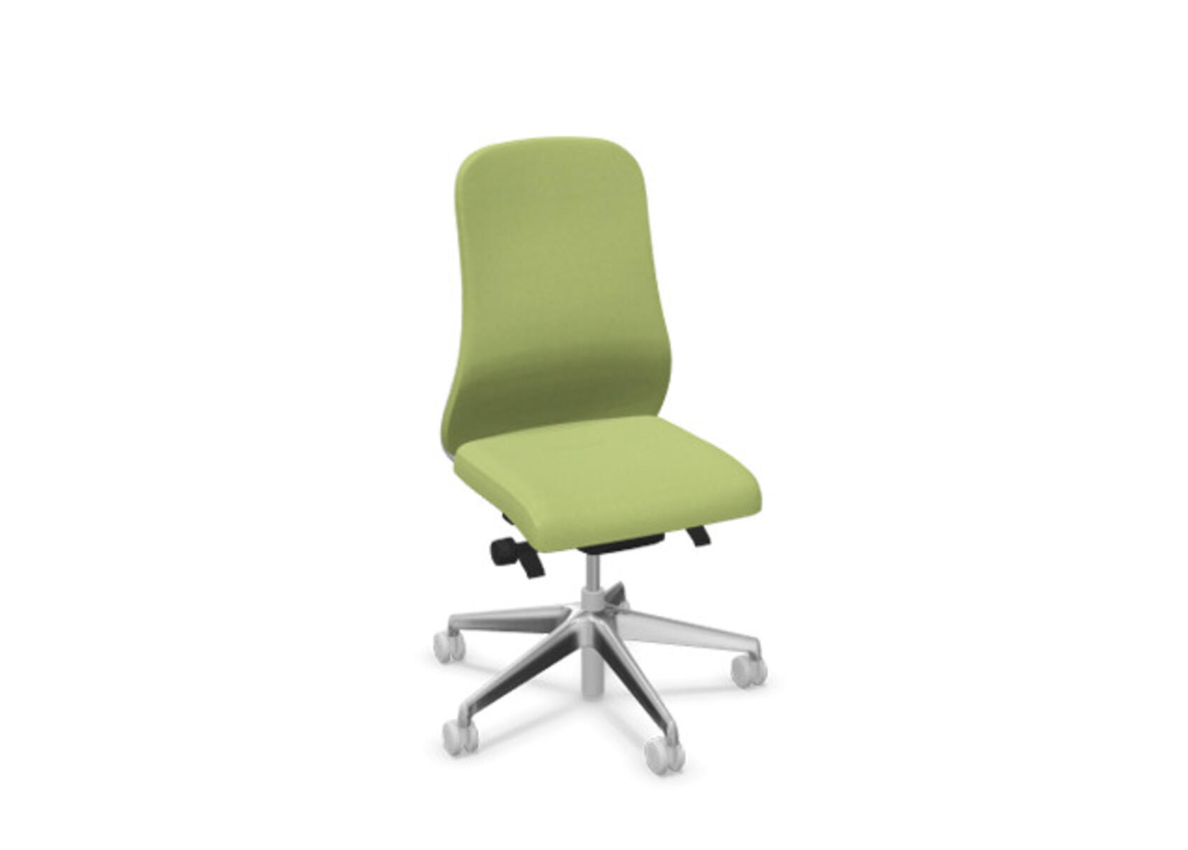 Moderne og ergonomisk kontorstol med halvpolstret ryg og synkronmekanisme samt sædedybdejustering, udviklet til at give støtte ved aktiv siddestilling under hele arbejdsdagen. Polstret med polyesterstof. Den synkroniserede vinkel mellem ryglæn og sæde muliggør en aktiv og behagelig siddestilling. Ryglænsvinkel 21° synkroniseret med sædevinkel 7°. Ryglænet kan låses i 4 forskellige positioner og er udstyret med en funktion, som automatisk justerer ryglænets modstand efter brugerens vægt og giver mulighed for yderligere justering i 3 trin. Ryglænet er ikke højdejusterbart. Sædedybden kan justeres inden for et interval på 60 mm, 7 låsepositioner. Stolen har også Anti-Shock-funktion, som forhindrer, at ryglænet slår tilbage, når vippefunktionen låses op. Vælg mellem fodkryds i sort polyamid eller poleret aluminium samt selvbremsende hjul til bløde eller hårde gulve. Som tilvalg fås også lændestøtte, manuelt højdejusterbar (55 mm). Armlæn 2D, 3D eller 4D sælges separat.